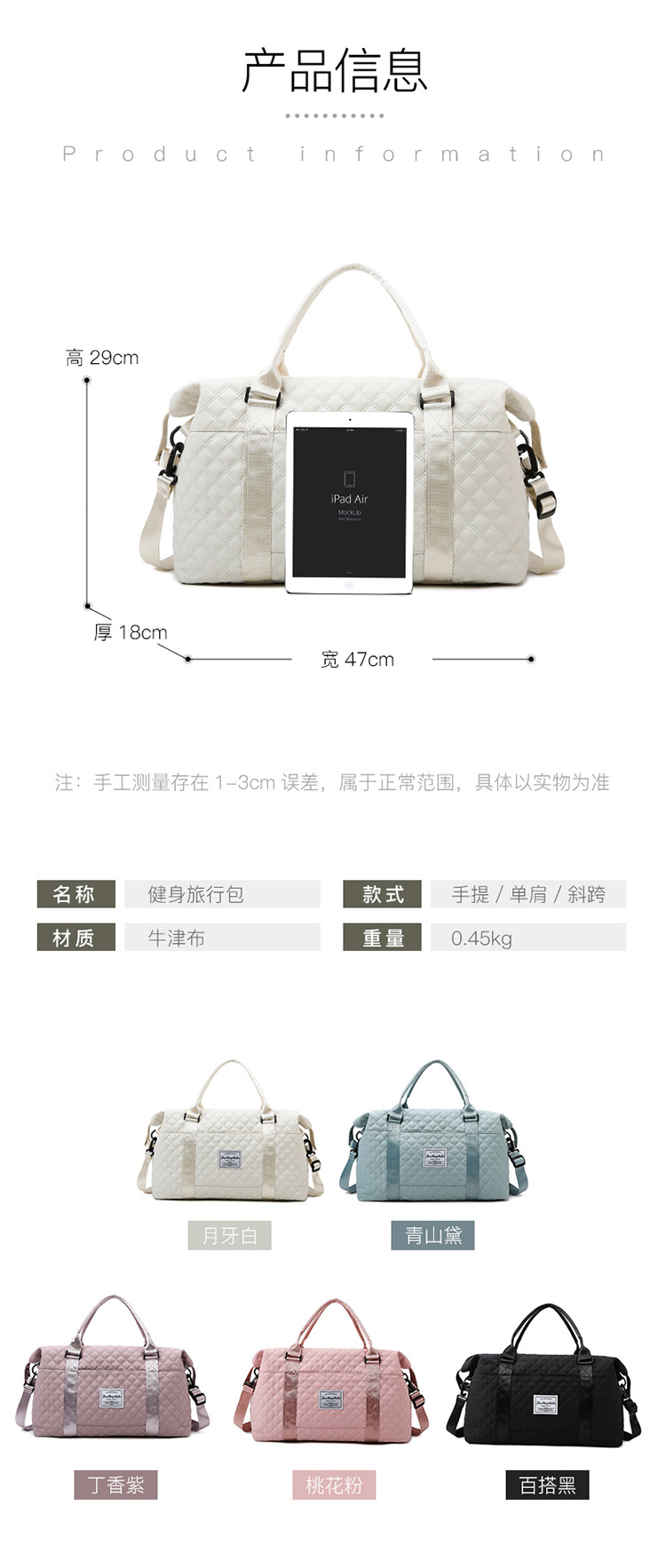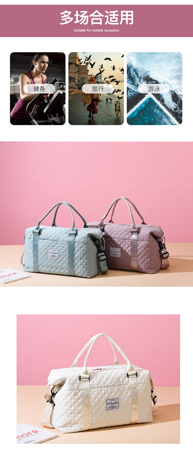 旅行包女时尚大容量短途旅游收纳行李包男手提轻便斜挎运动健身包