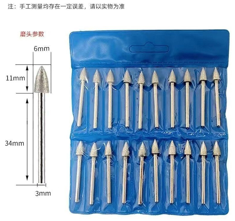 3mm20個セット サイリック砥石針 電着サイリック研磨針 翡翠・宝石・石材加工専用
