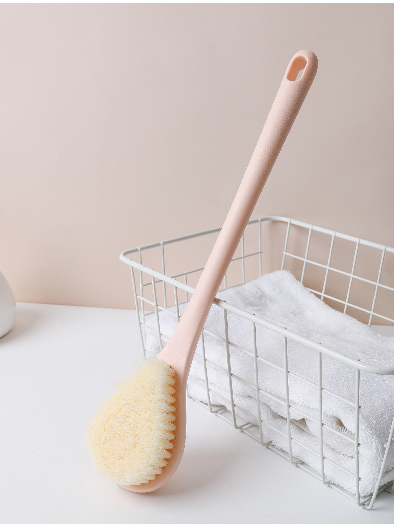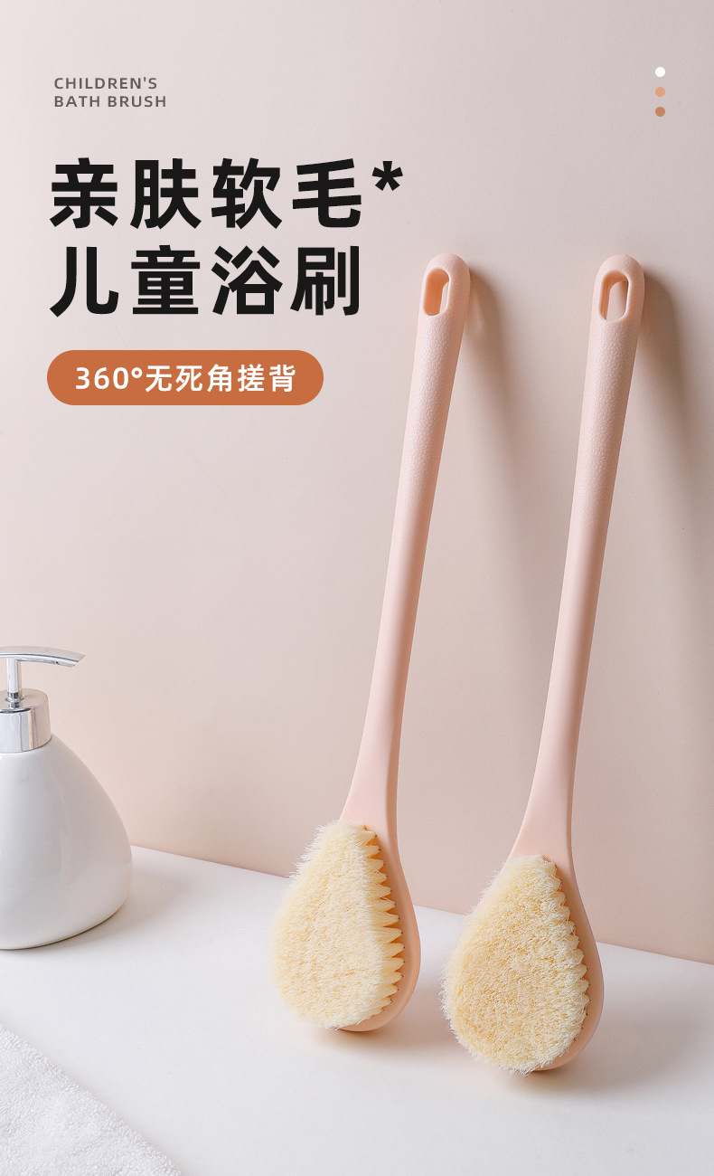 お風呂ブラシは柔らかい毛の長い柄で背中の神器をこすります。