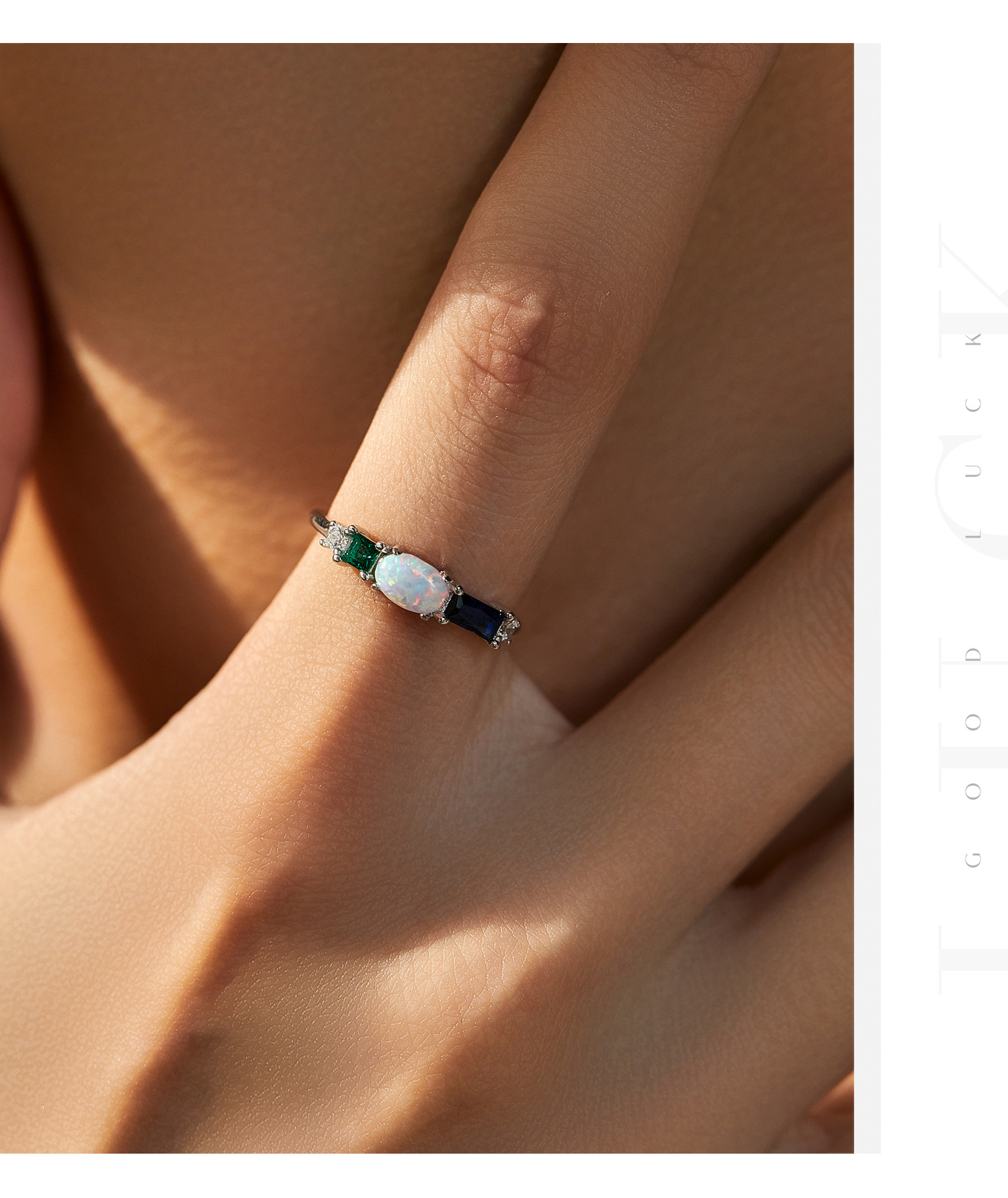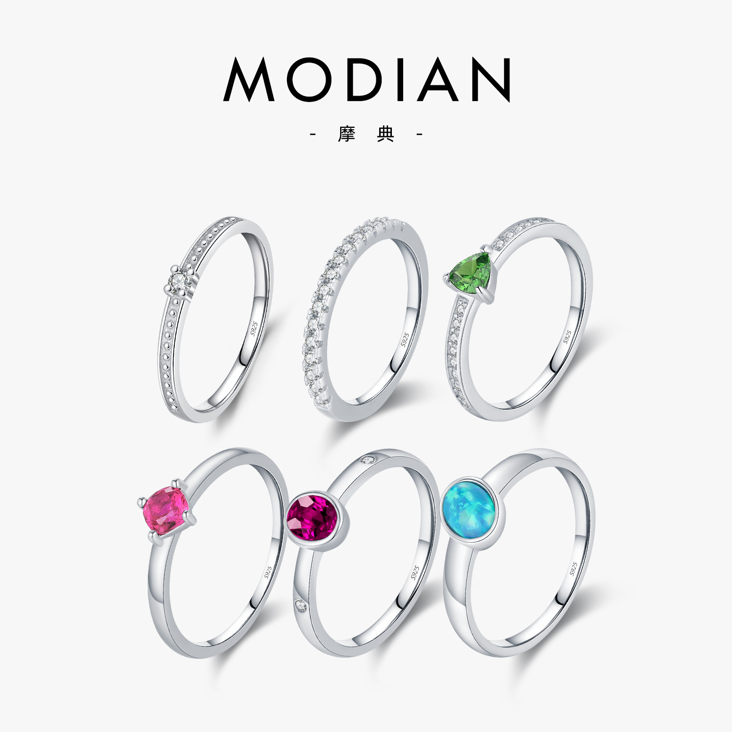 MODIAN摩典s925銀ドーパミン配色指輪百合幸運四葉草緑松石愛指輪女