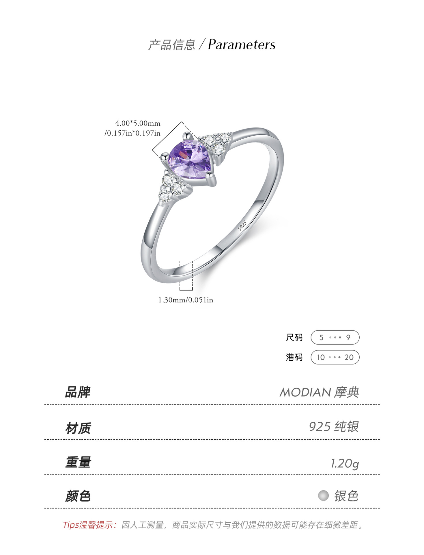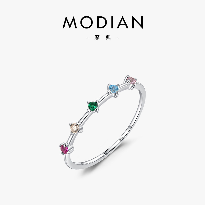 MODIAN摩典D色莫桑ドリルs 925純銀日韓贅沢気質超フラッシュドリル指輪食指戒女