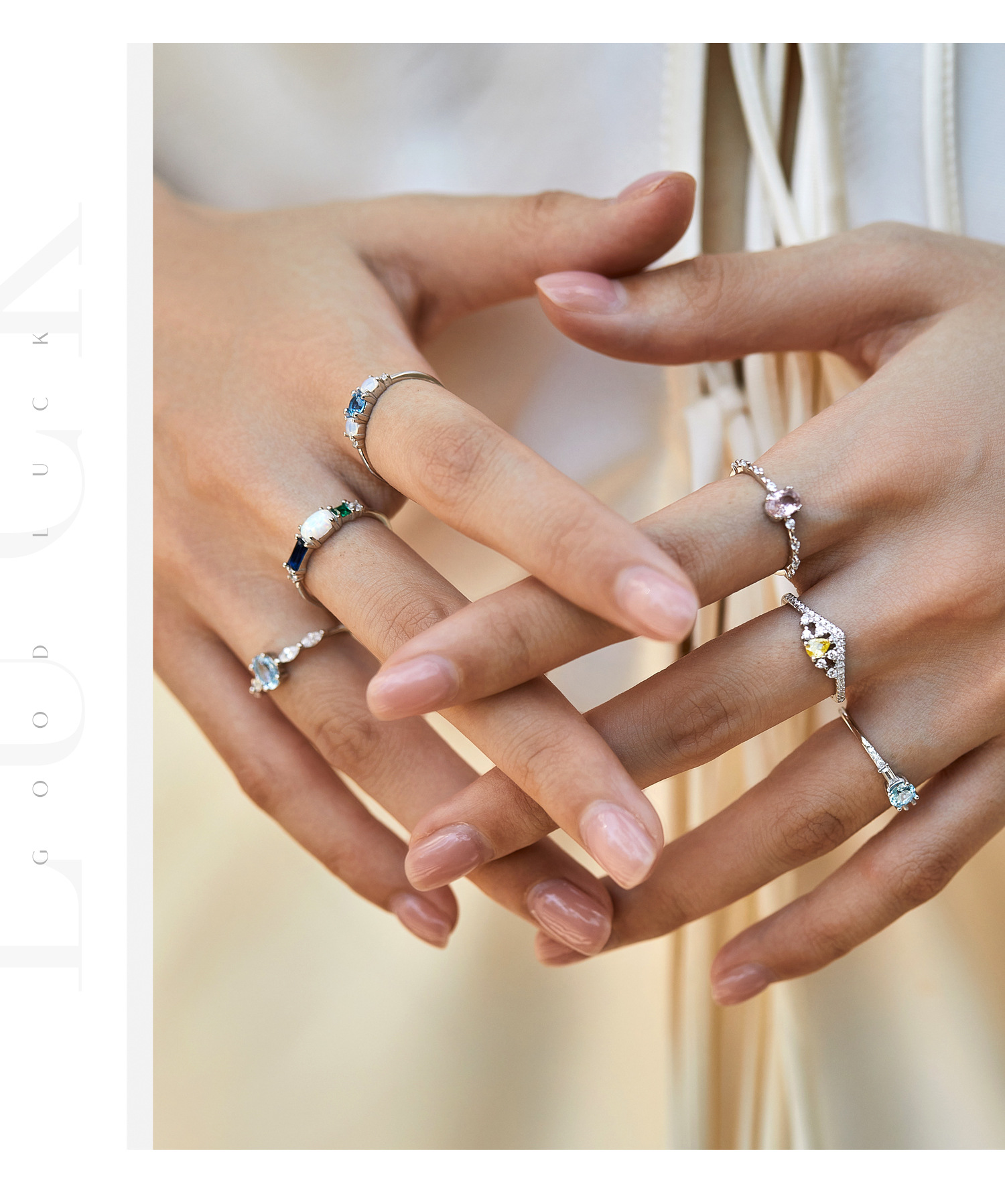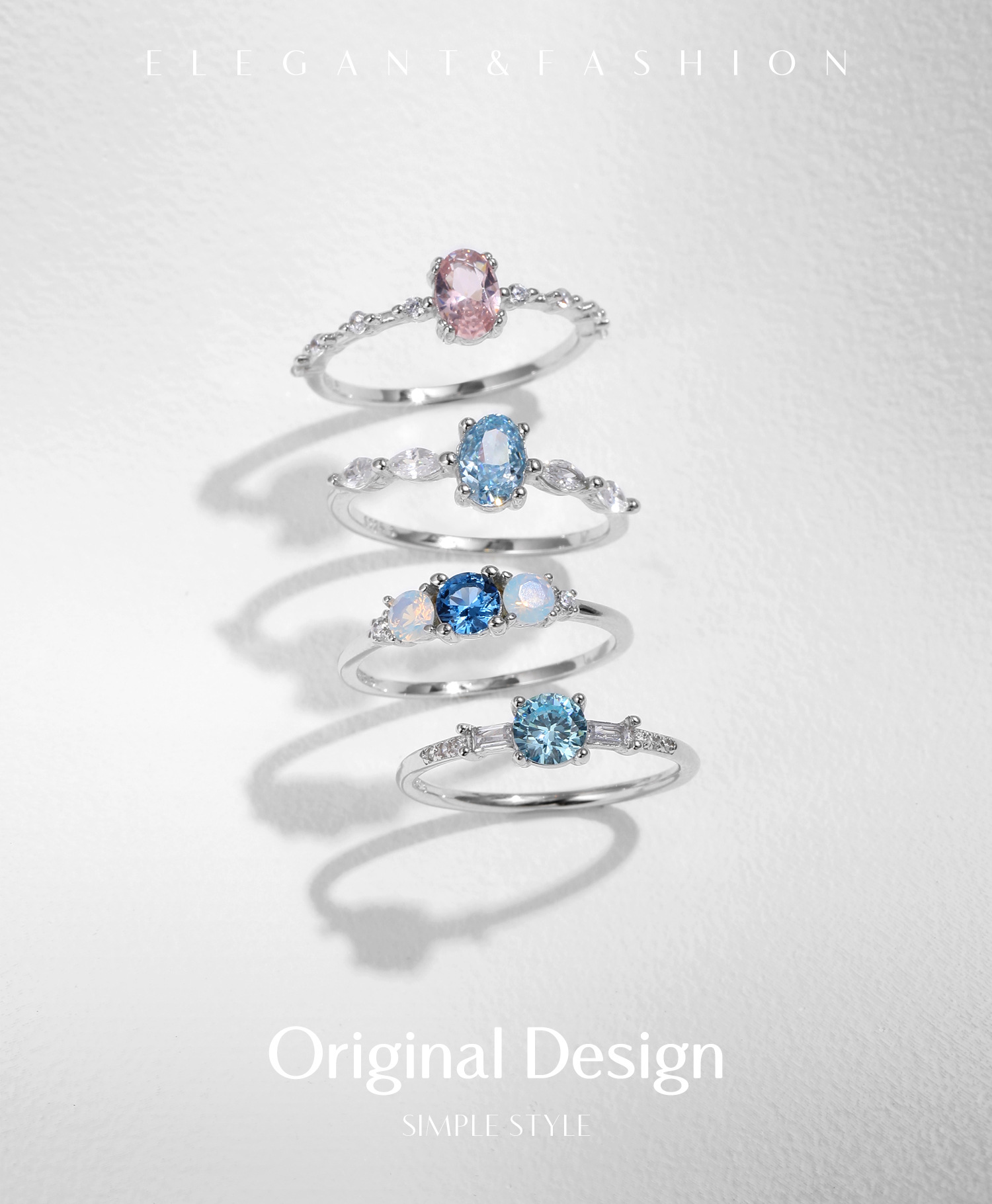 S 925純銀カラー虹は欧米のins潮指輪を重ねています。