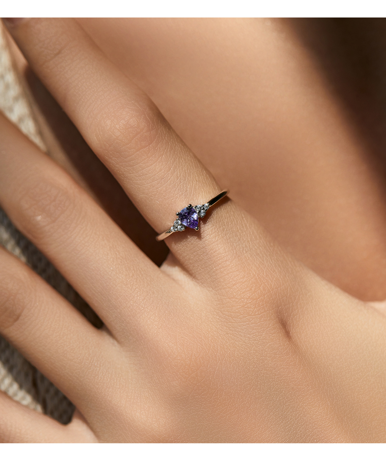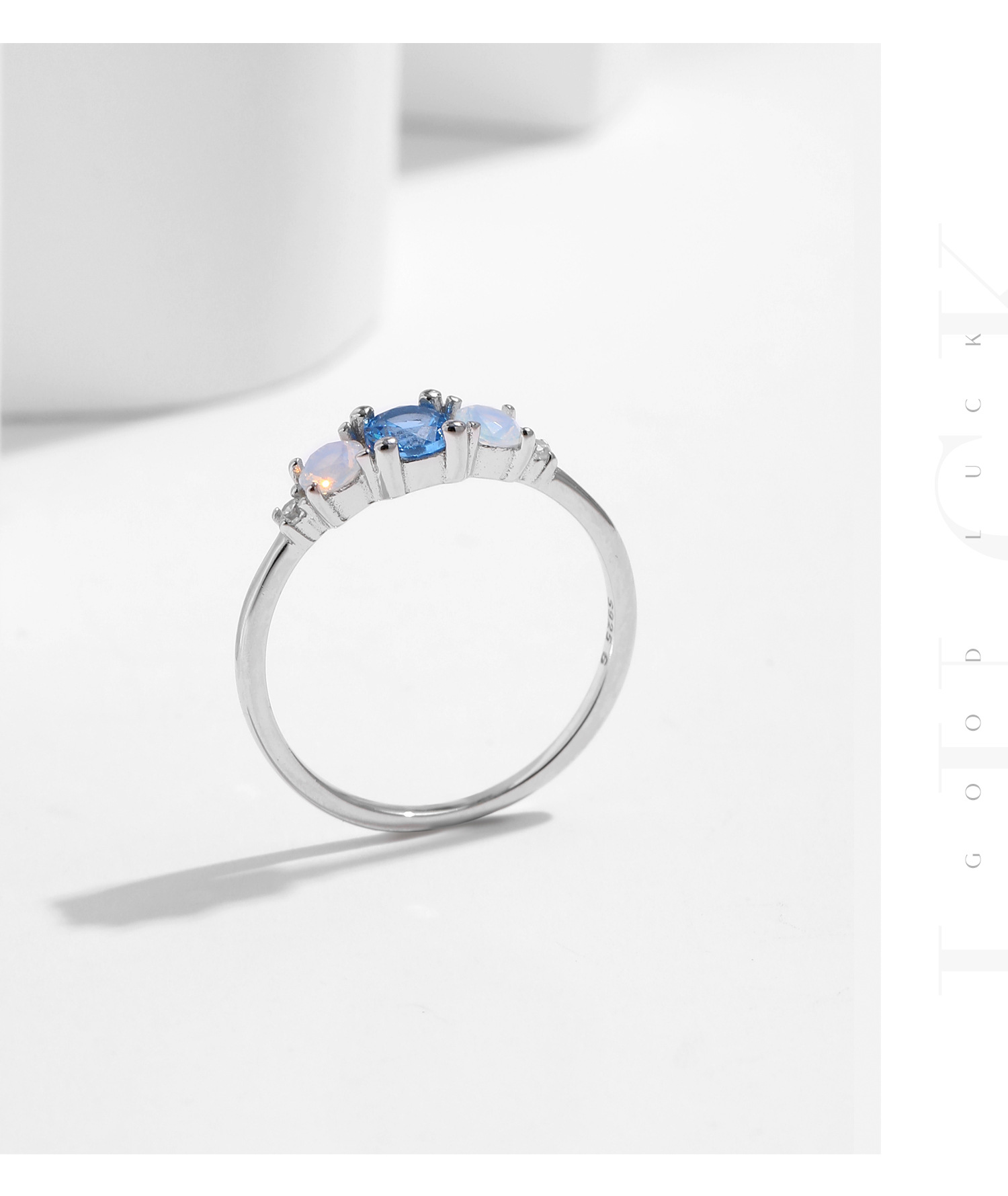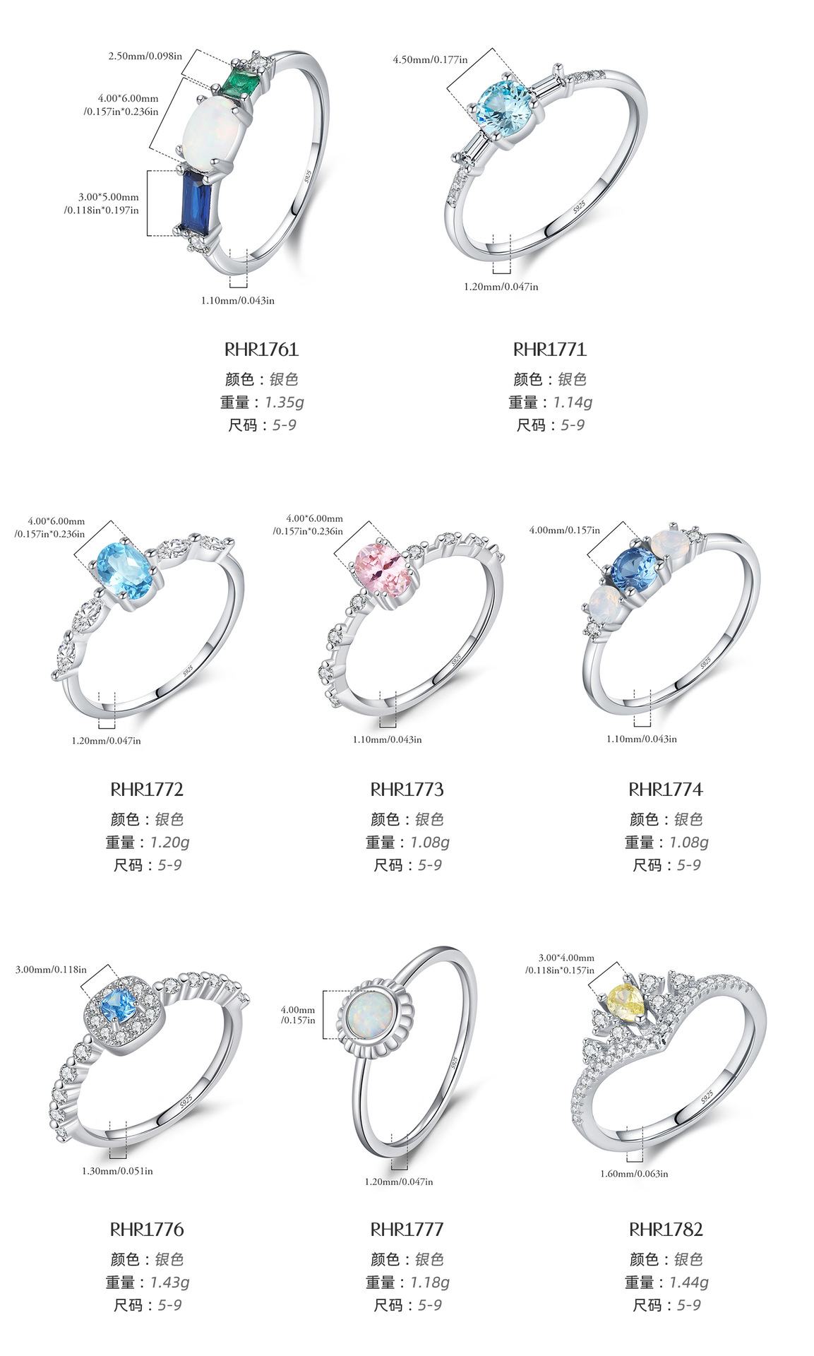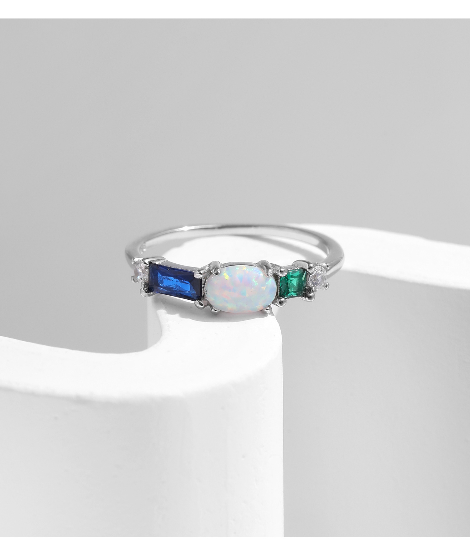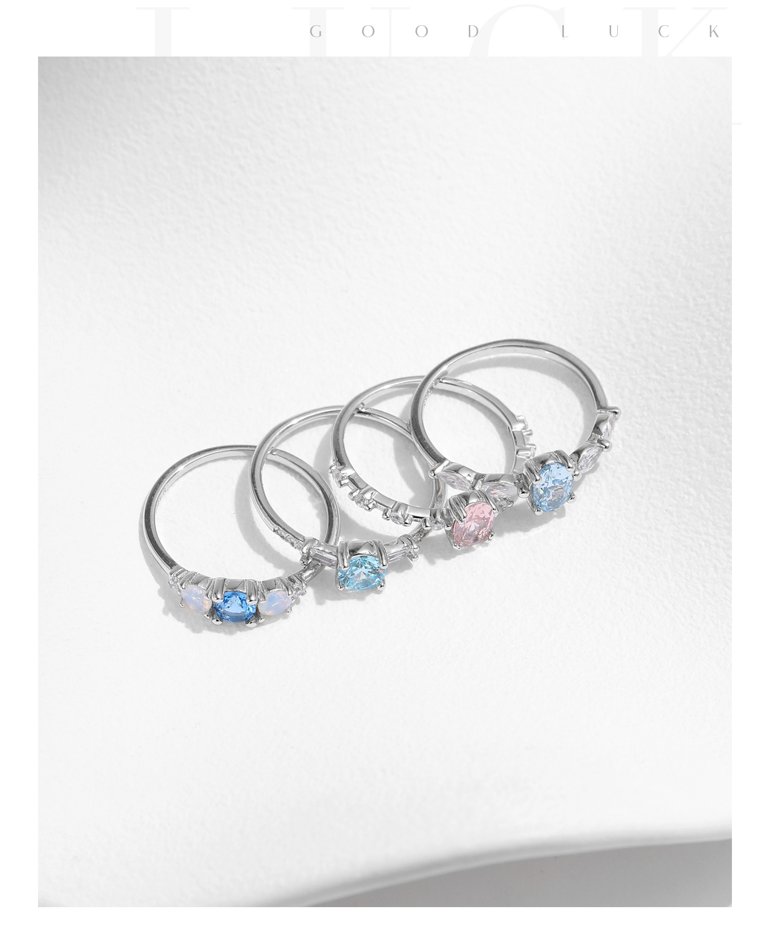 韓国版小清新s925純銀カラージルコンの指輪