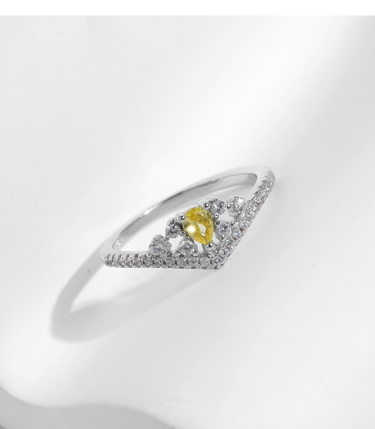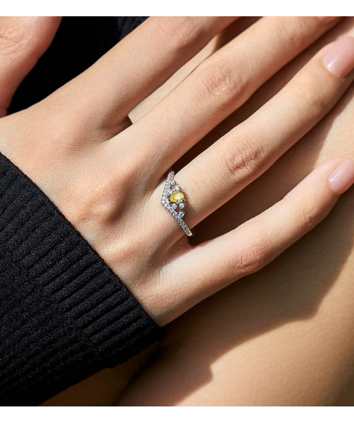 MODIAN摩典S925銀赫本風デザイン感黄ドリル水滴尾戒キラキラ列ドリル開口指輪女