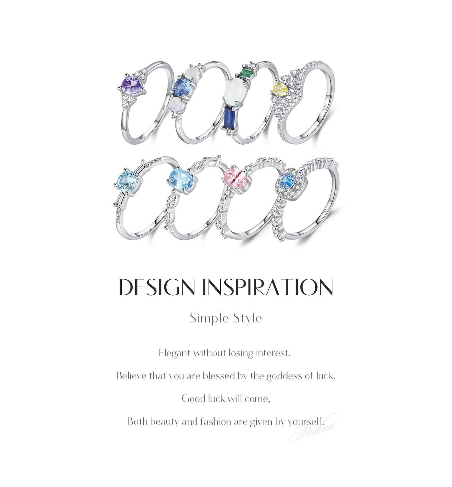 MODIAN摩典s 925純銀水晶指輪韓国版韓国式高級感百合小衆にドリルを入れて指戒女を指します。
