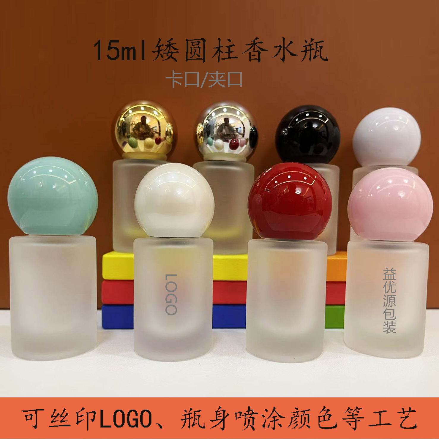 15mlの低い円柱の香水瓶15のバヨネットの香水は瓶の球形の香水の蓋の小さいサンプルの香水の瓶を分けます。
