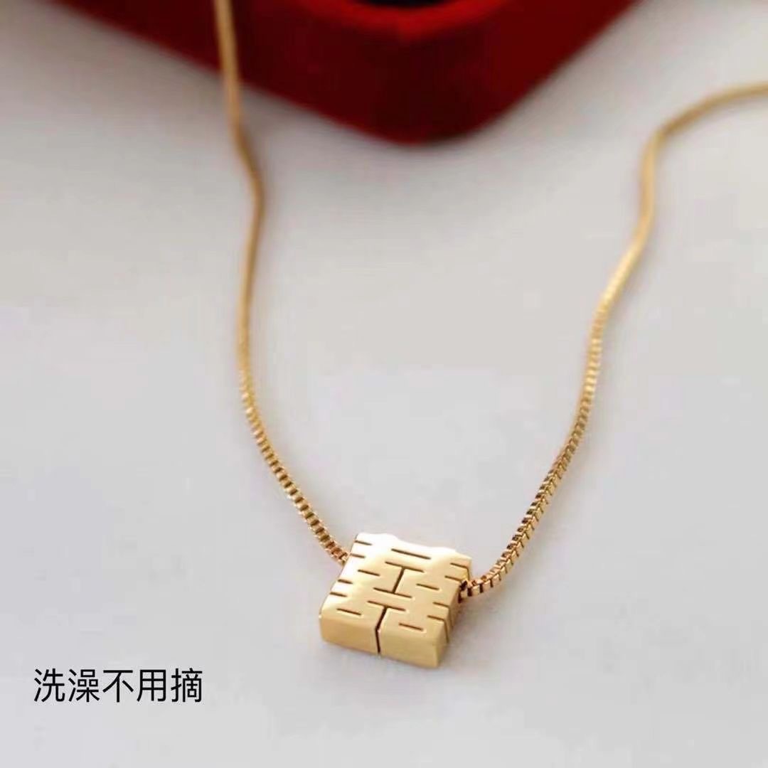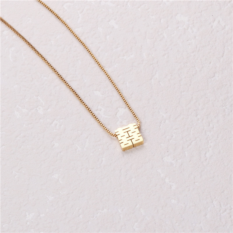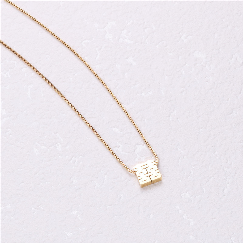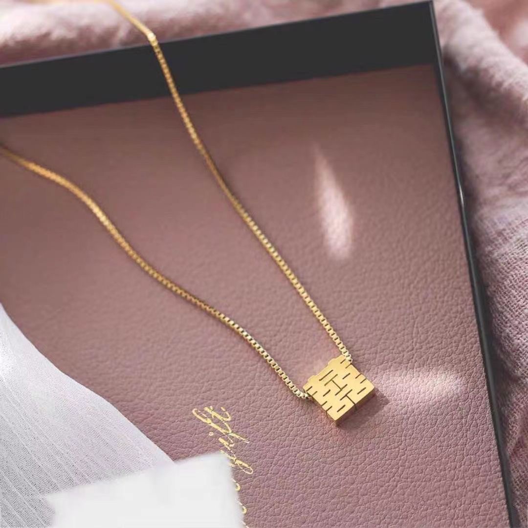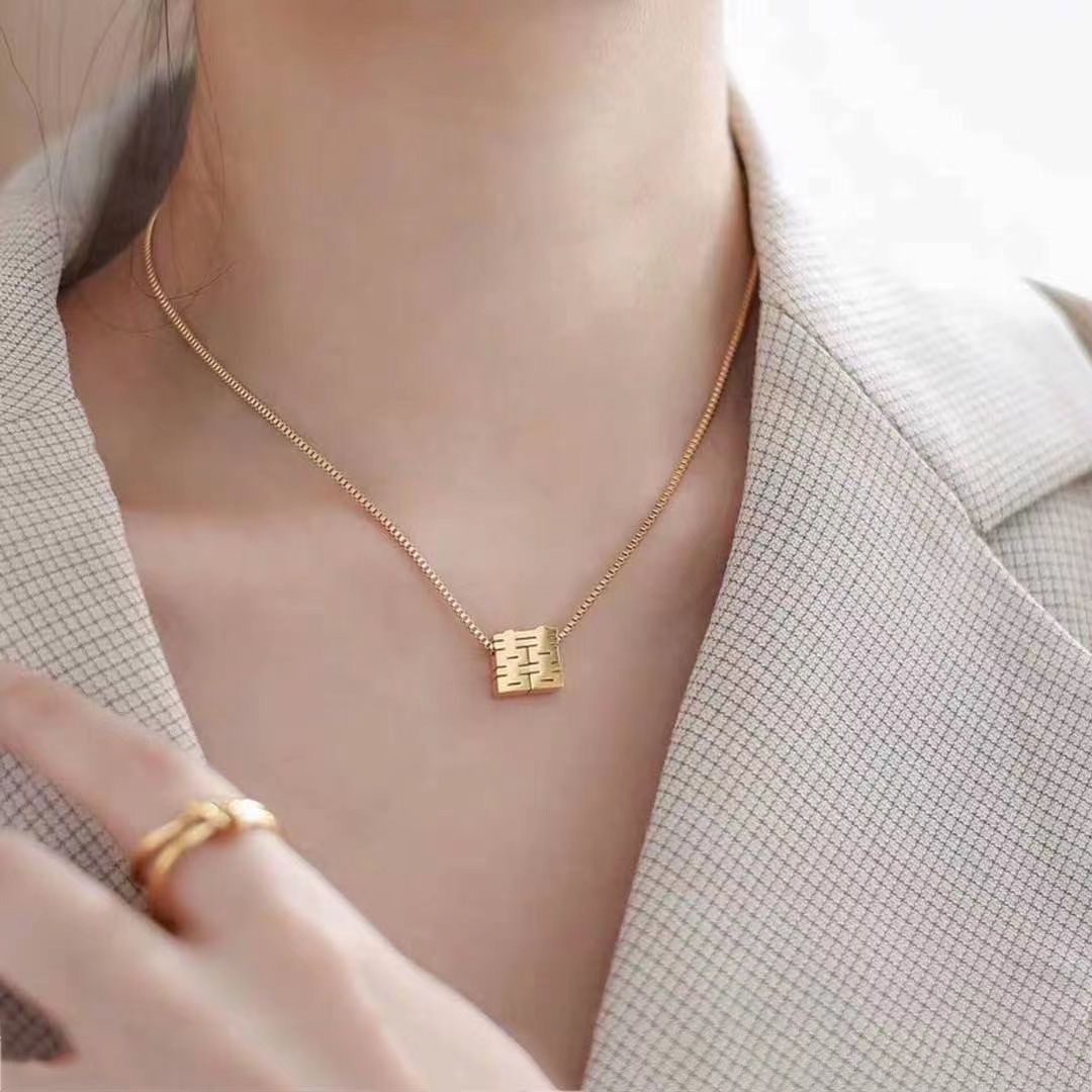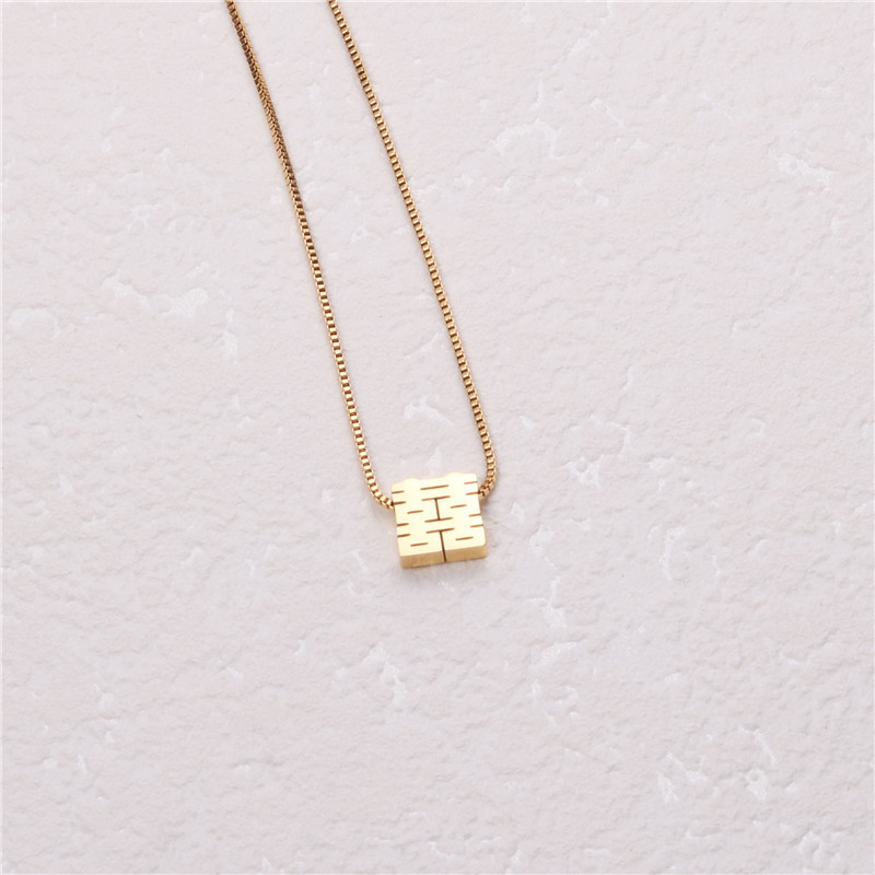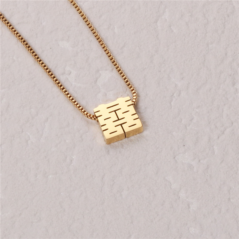 「喜気洋洋」チタン鋼喜字ペンダント中国風古典双喜抜き方形箱チェーン中長親友