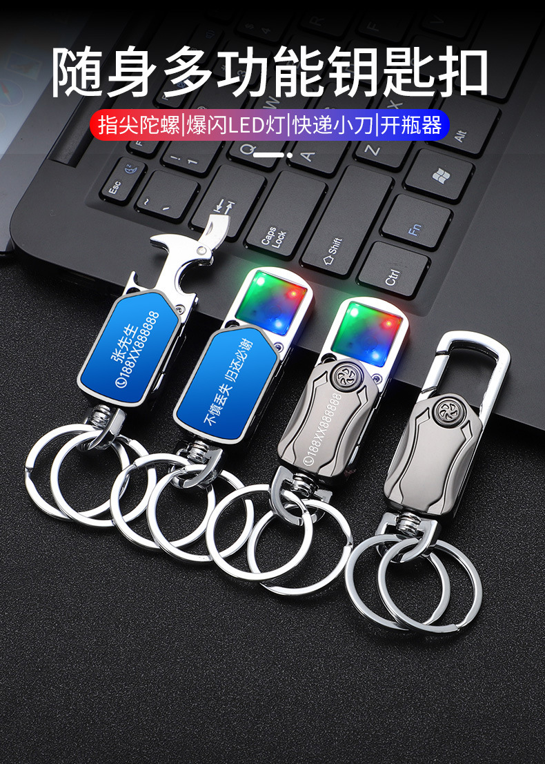 多機能キーホルダー広告プレゼントナイフ開瓶亜鉛合金キーホルダーレーザー彫刻指先ジャイロ