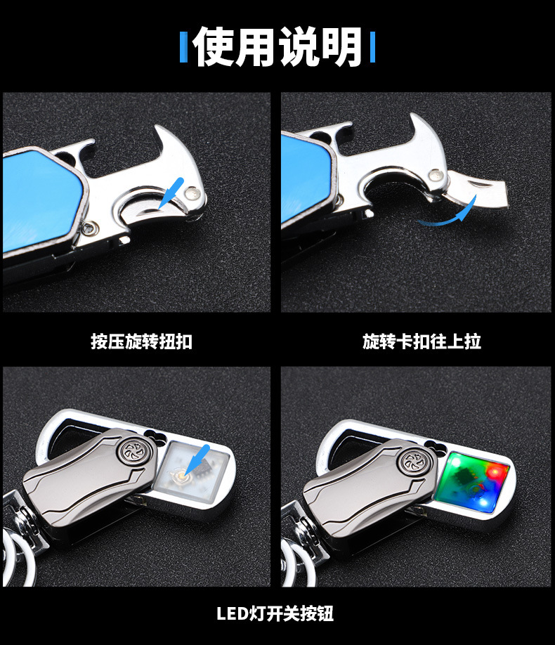 クールな点灯ジャイロ自動車のキーホルダー多機能キーチェーン宅配便ナイフのボトルホルダーのストラップ解凍ジャイロ
