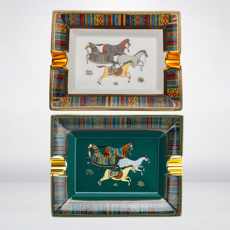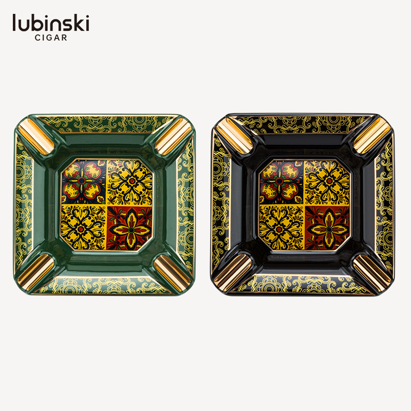 ルビンスキーLUBINSKIシガー灰皿陶磁器ヨーロッパ式二槽彩色家庭用金属シガー灰皿