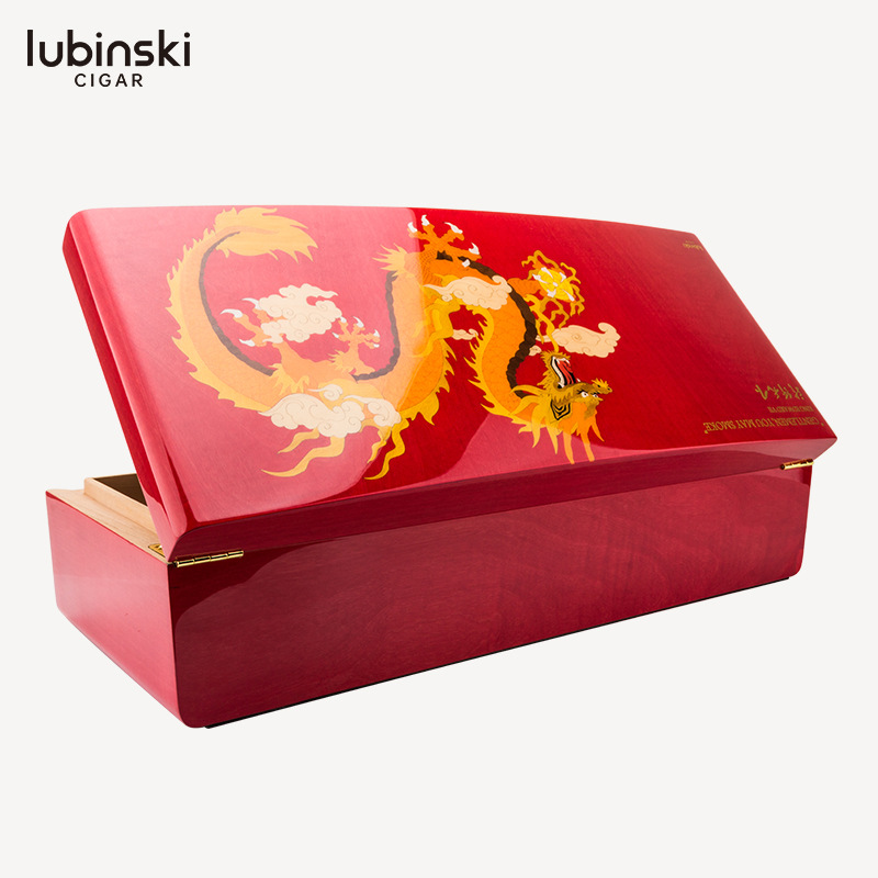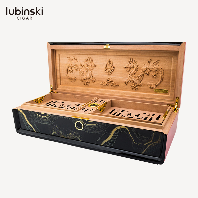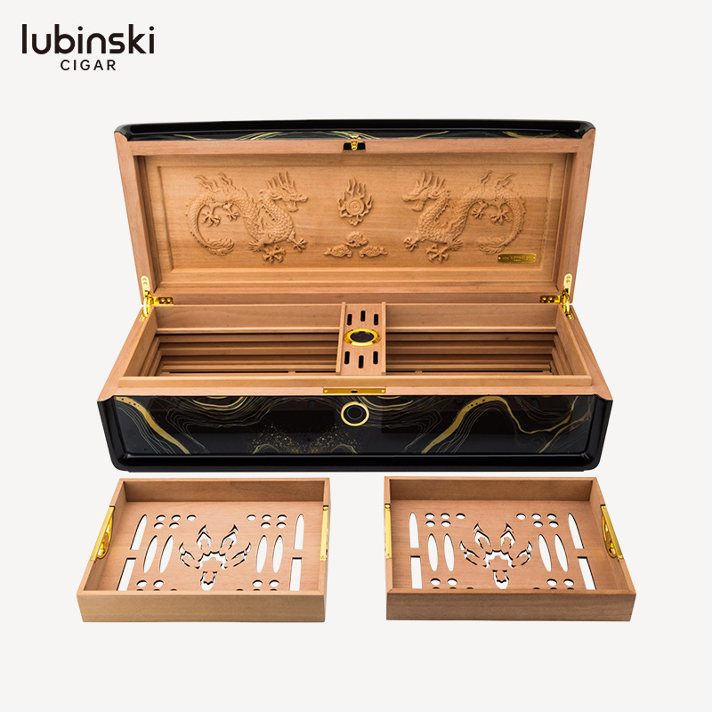 LUBINSKI龍年シガーボックス指紋ロック焼付塗装龍騰立体彫刻二重シガーシガー保湿ボックス