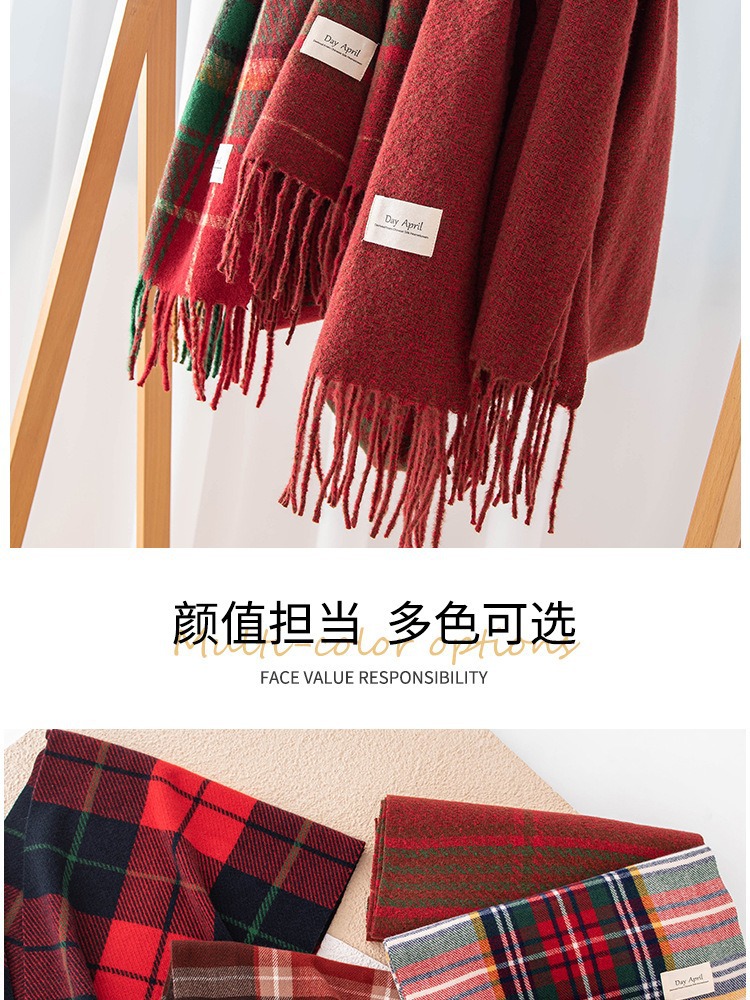 カシミヤ手触り秋冬新年格子マフラー韓国系雰囲気感女性模造カシミヤアンコラ赤マフラー