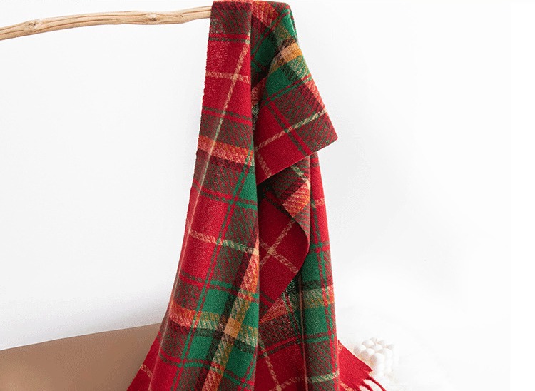 秋と冬のクリスマススカーフ雰囲気模造カシミヤ女性のハイエンドチェック柄赤新年冬暖かいスカーフ卸売
