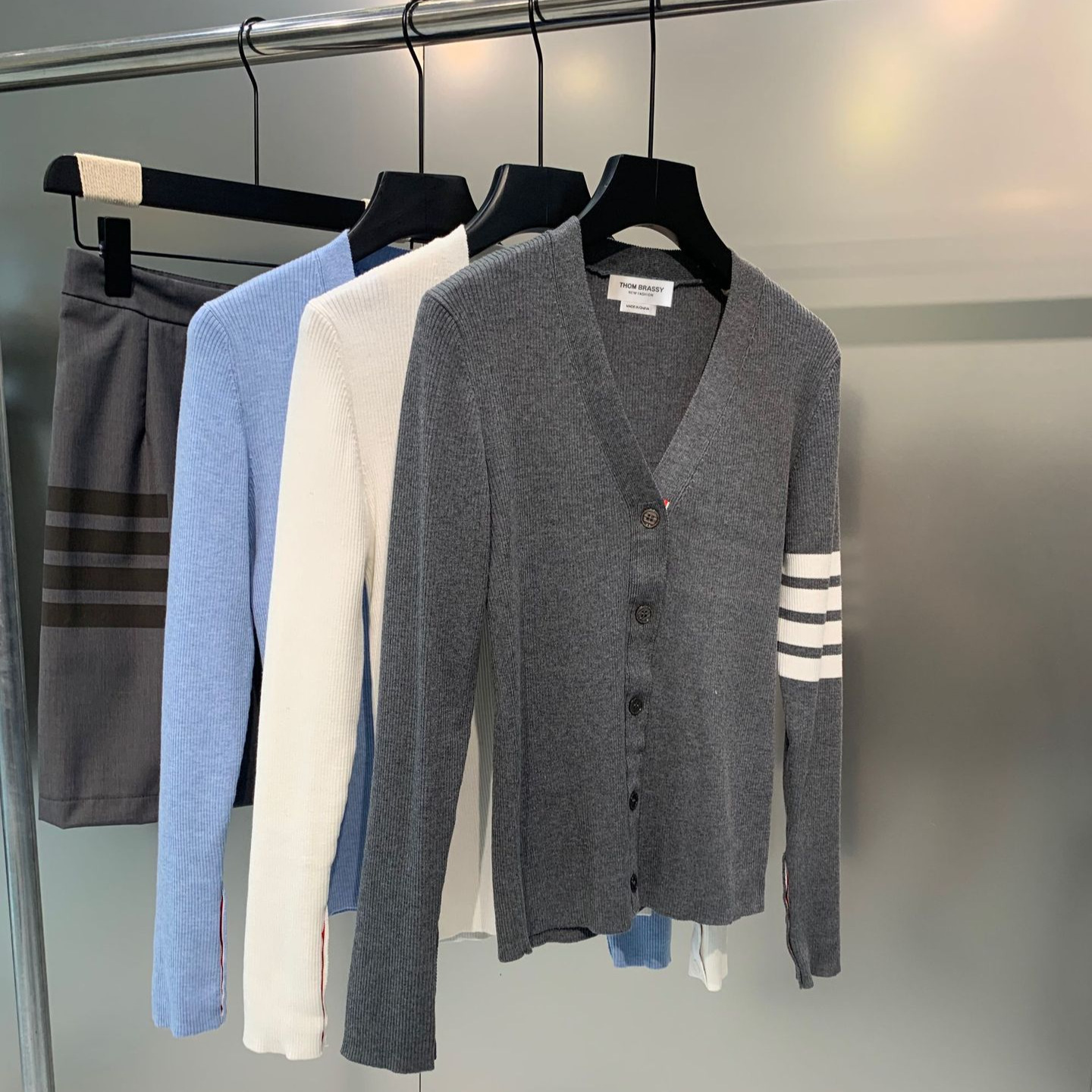 Tbクラシック4バーvネックスリム5ボタン長袖ウールニットカーディガン気質セーターカーディガン男女