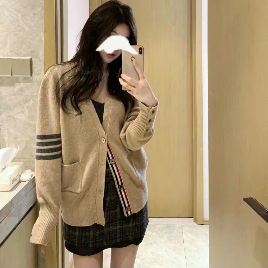 秋冬tb经典款四道杠针织开衫女休闲百搭v领显瘦长袖上衣外套潮牌