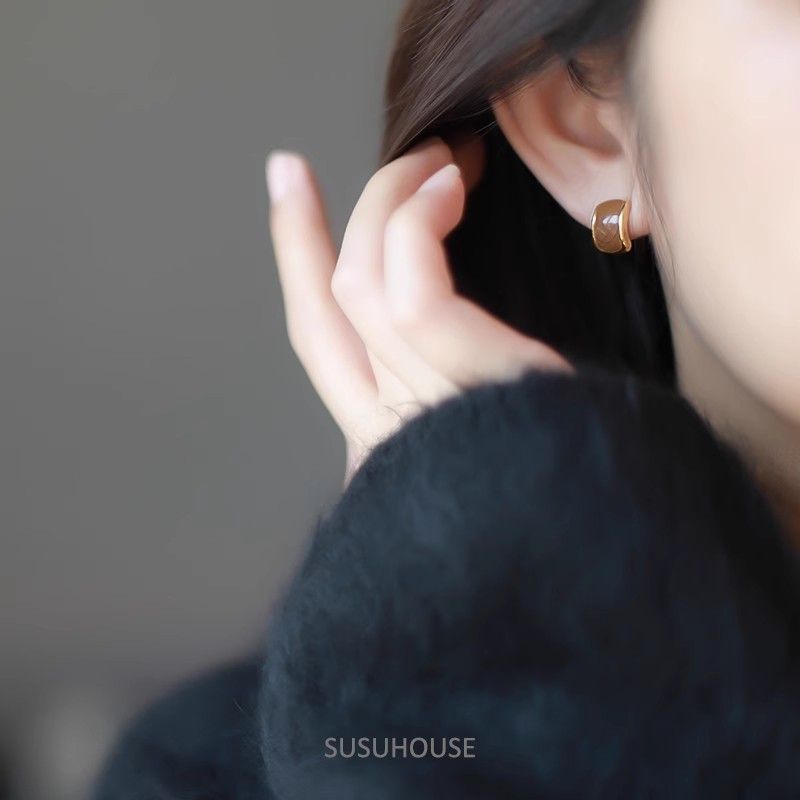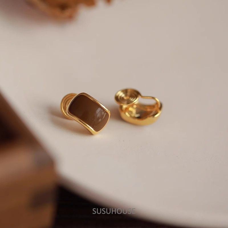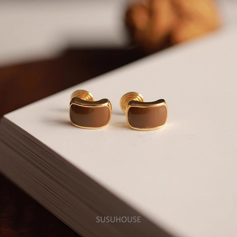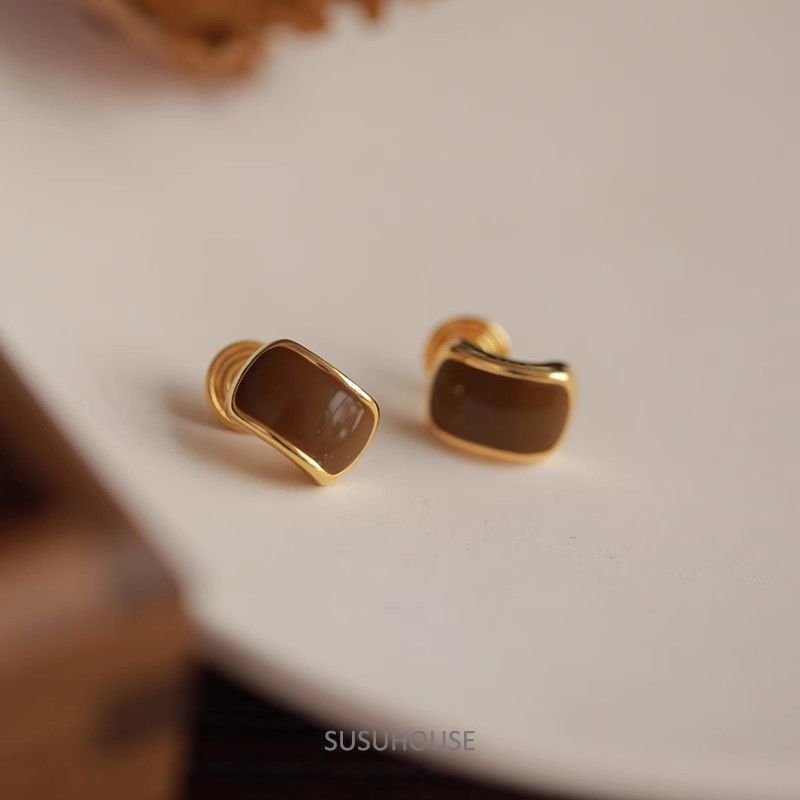 合金耳飾り美ラードカレー色ピアスフランス軽贅沢高級感ファッション独特デザイン小香風