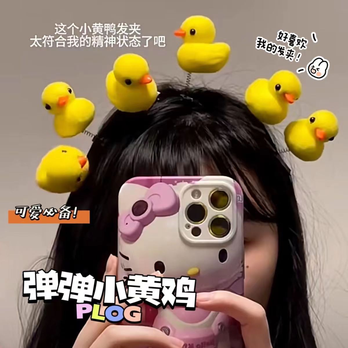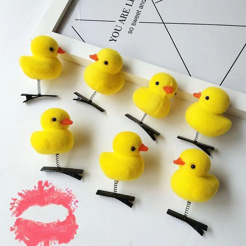 可爱卖萌小黄鸭发夹儿童立体弹簧夹发饰网红毛绒卡通外贸发夹批发
