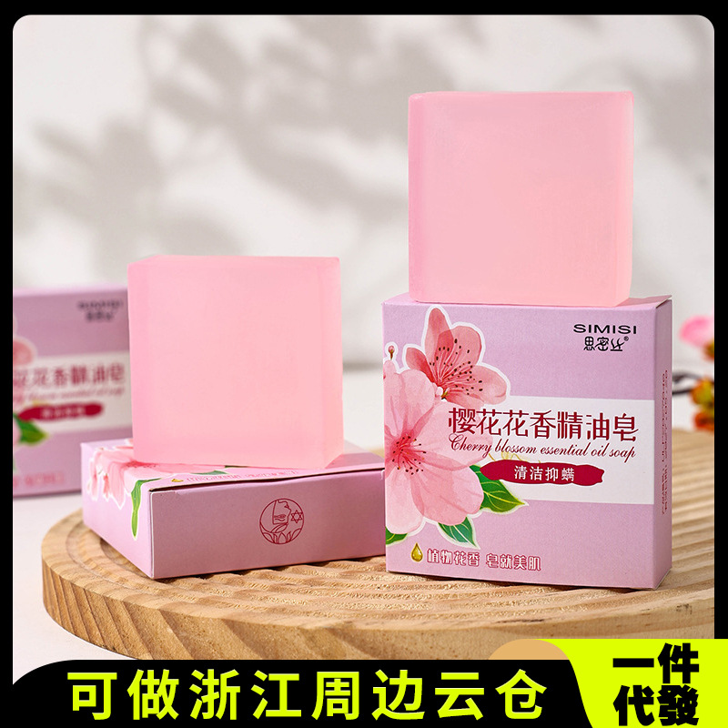 代件【思密糸】桜の花の香りの精油石鹸の四角形の石けんの手作りの石けんは清潔で潤いがあります。