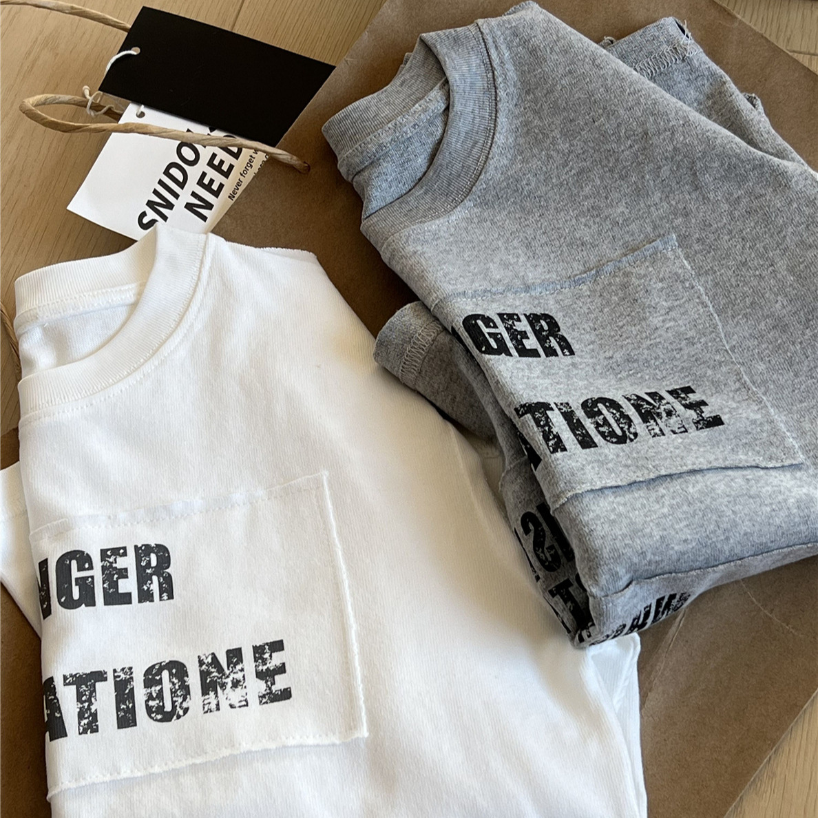 25秋の新作子供服、純綿の子供用Tシャツ、ダメージ加工、染め加工、ウォッシュ加工、男女兼用、おしゃれなインナー