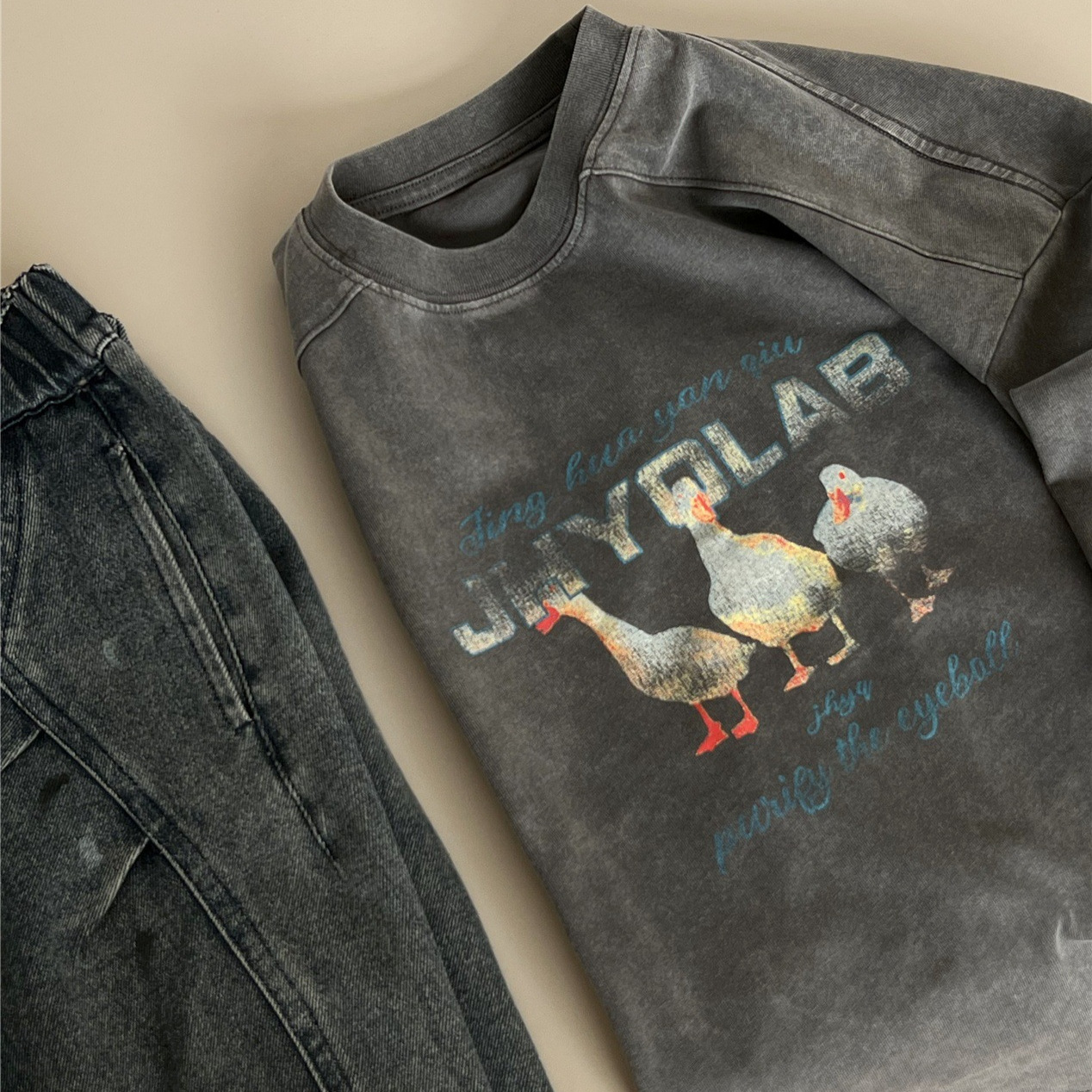 8327 2025秋款童装儿童炒色纯棉数码印花正肩复古男女童长袖T恤