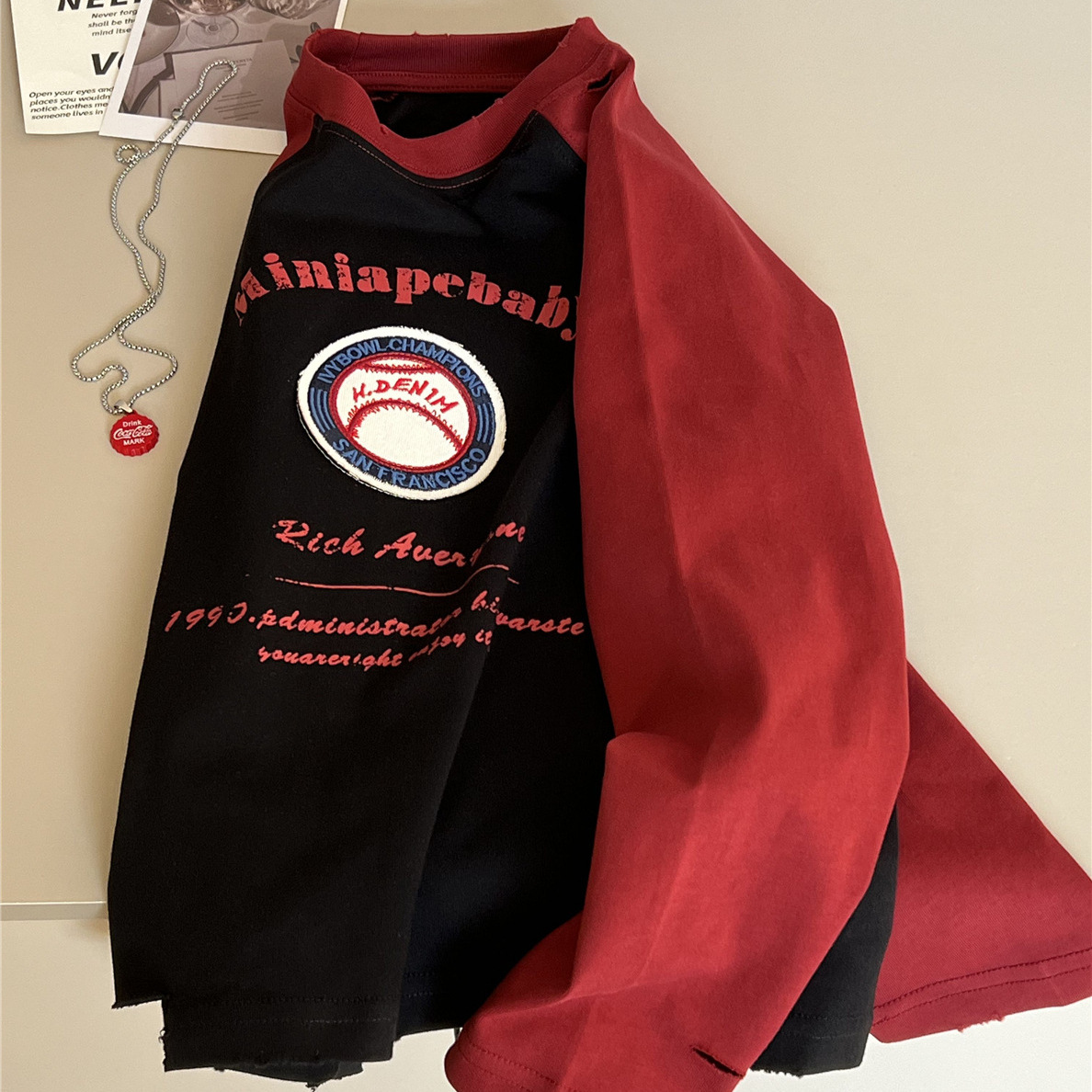【棒球刺绣】2025秋季韩版童装儿童纯棉长袖撞色破洞男童内搭上衣
