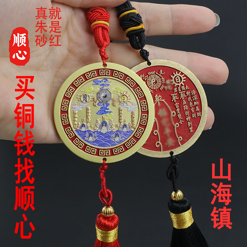 順心卸売り立体レリーフ山海鎮彩絵二十四星宿朱砂銅銭置物八卦鏡車ストラップ