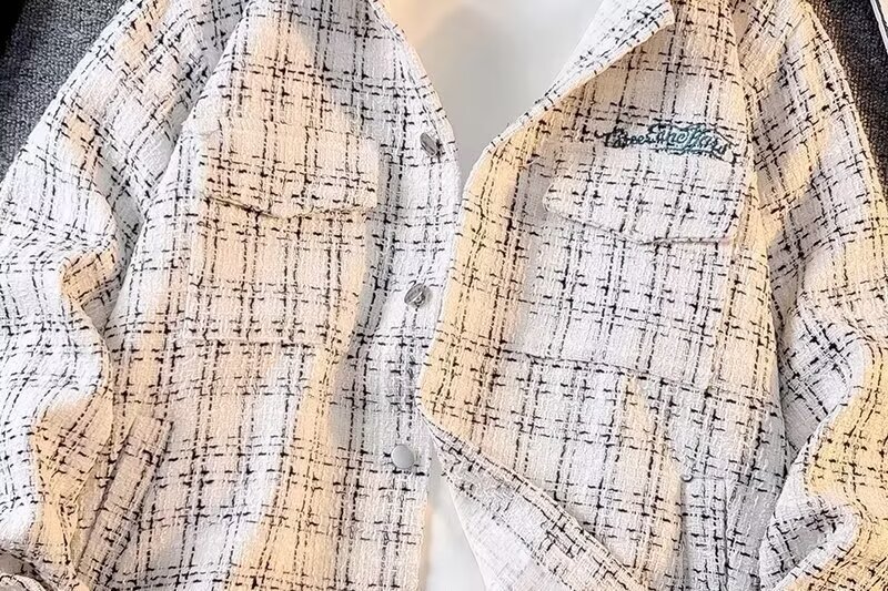 小香風シャツ男春秋新作韓国風ファッションブランドゆるい襟付き上着カップルファッションプリントジャケット男