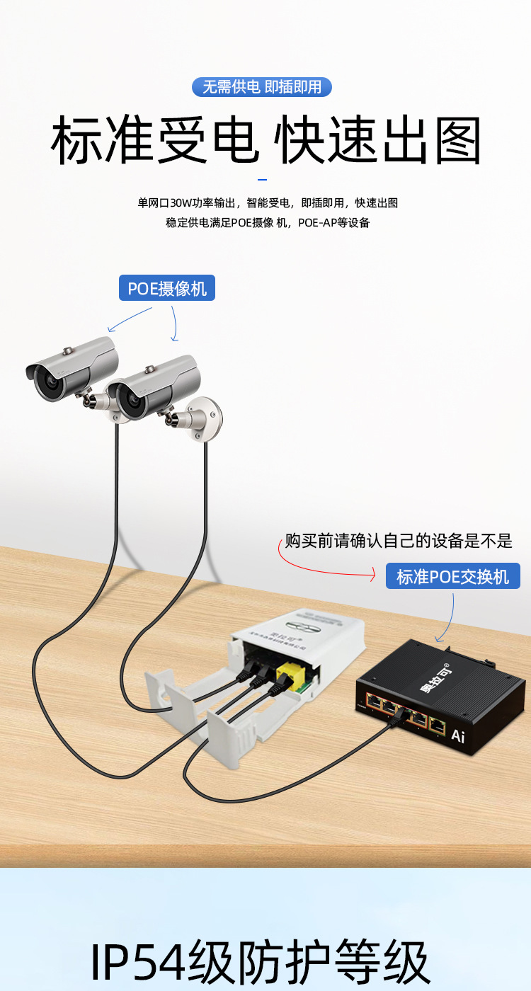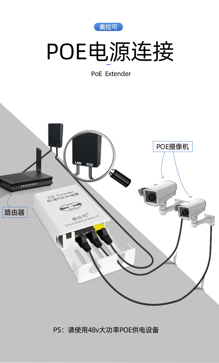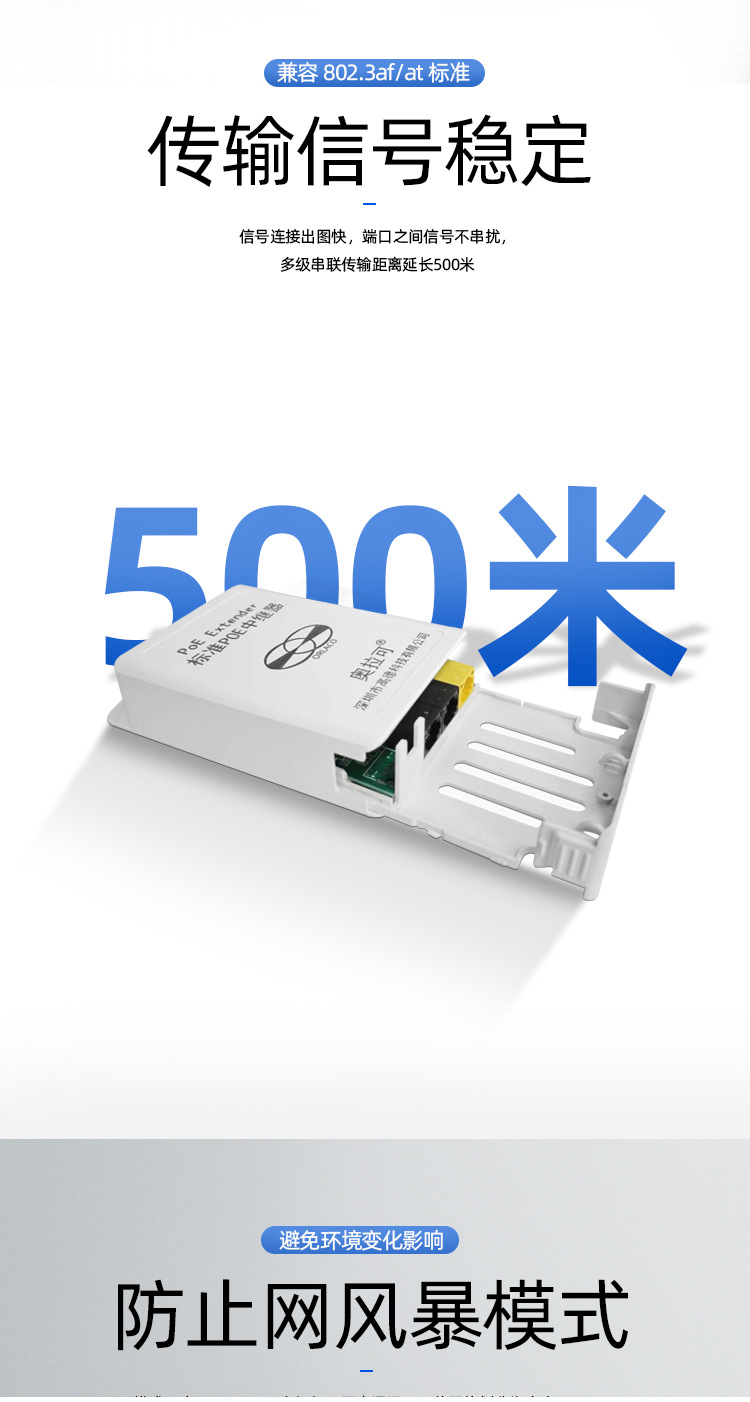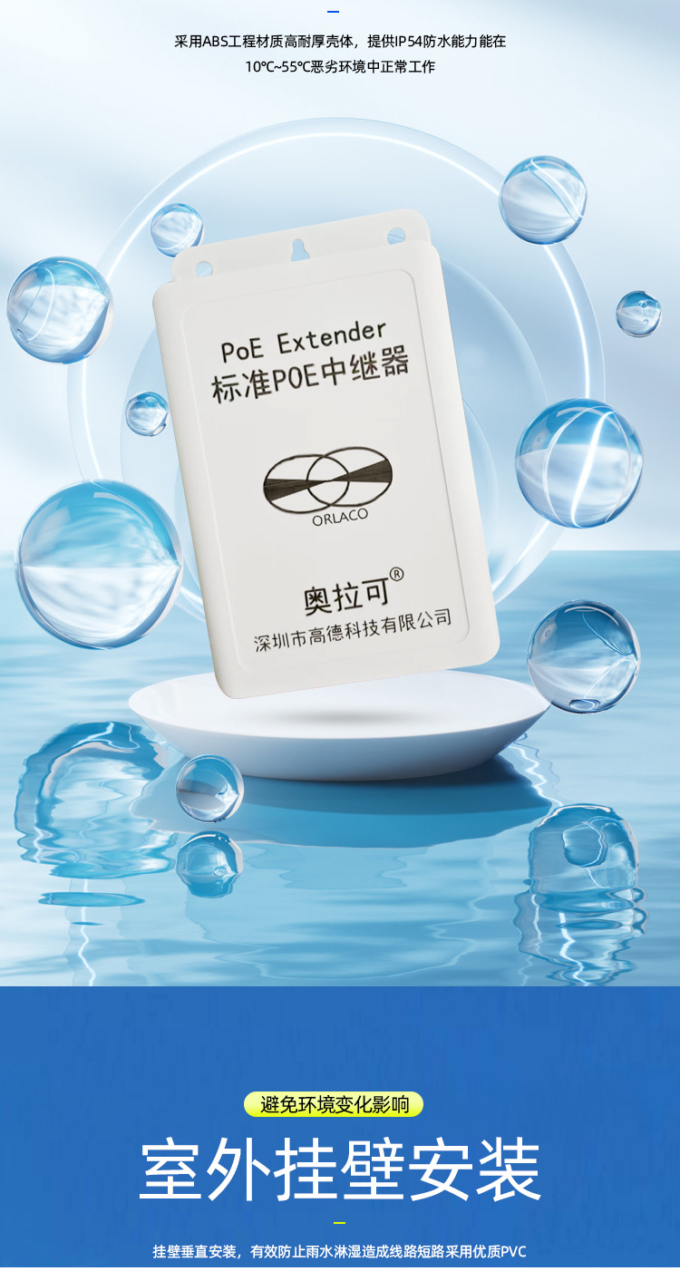 屋外防水ギガPOE中継器カスケード宝一分三POE延長器標準48V直列可能