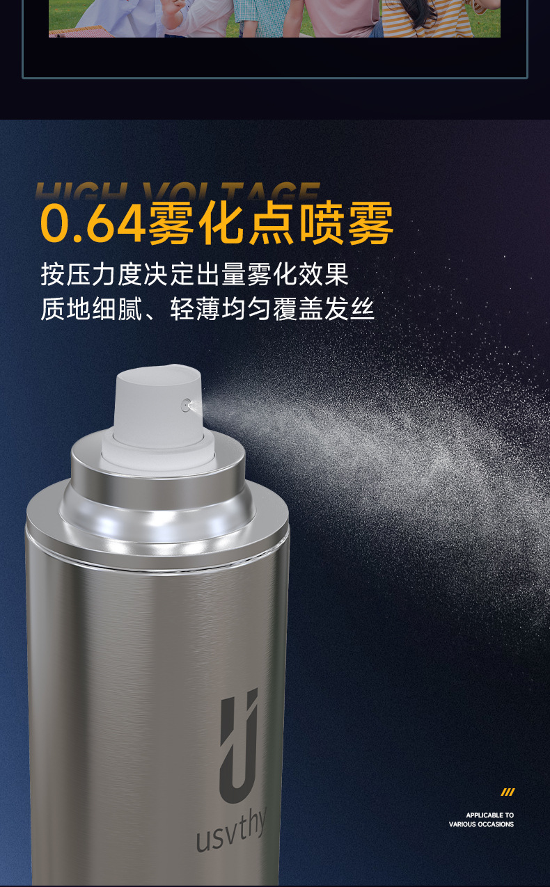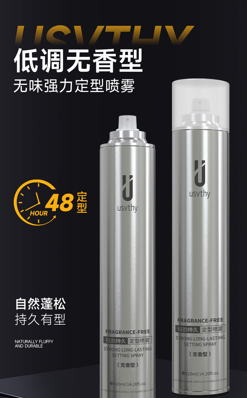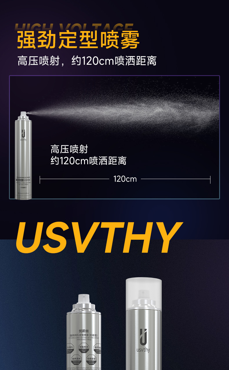 Usvthy定型スプレー自然なふわふわした男性の女性の持続的な髪のタイプのカールの粘着性の高い首のトップのヘアスプレー