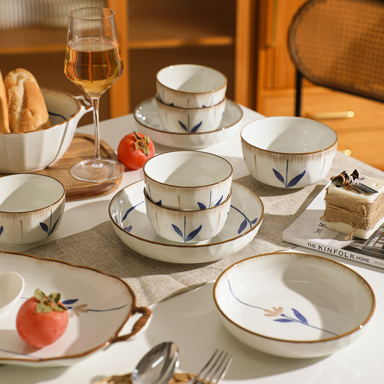 2025 クリエイティブな新しい祝福セラミック食器セット家庭用ライスボウルヨーグルトボウルボウルとプレート磁器釉下色食器