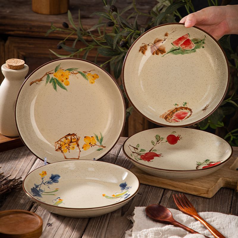 创意高颜值釉下彩盘子菜盘家用碟子陶瓷盘子备菜盘早餐盘复古餐具