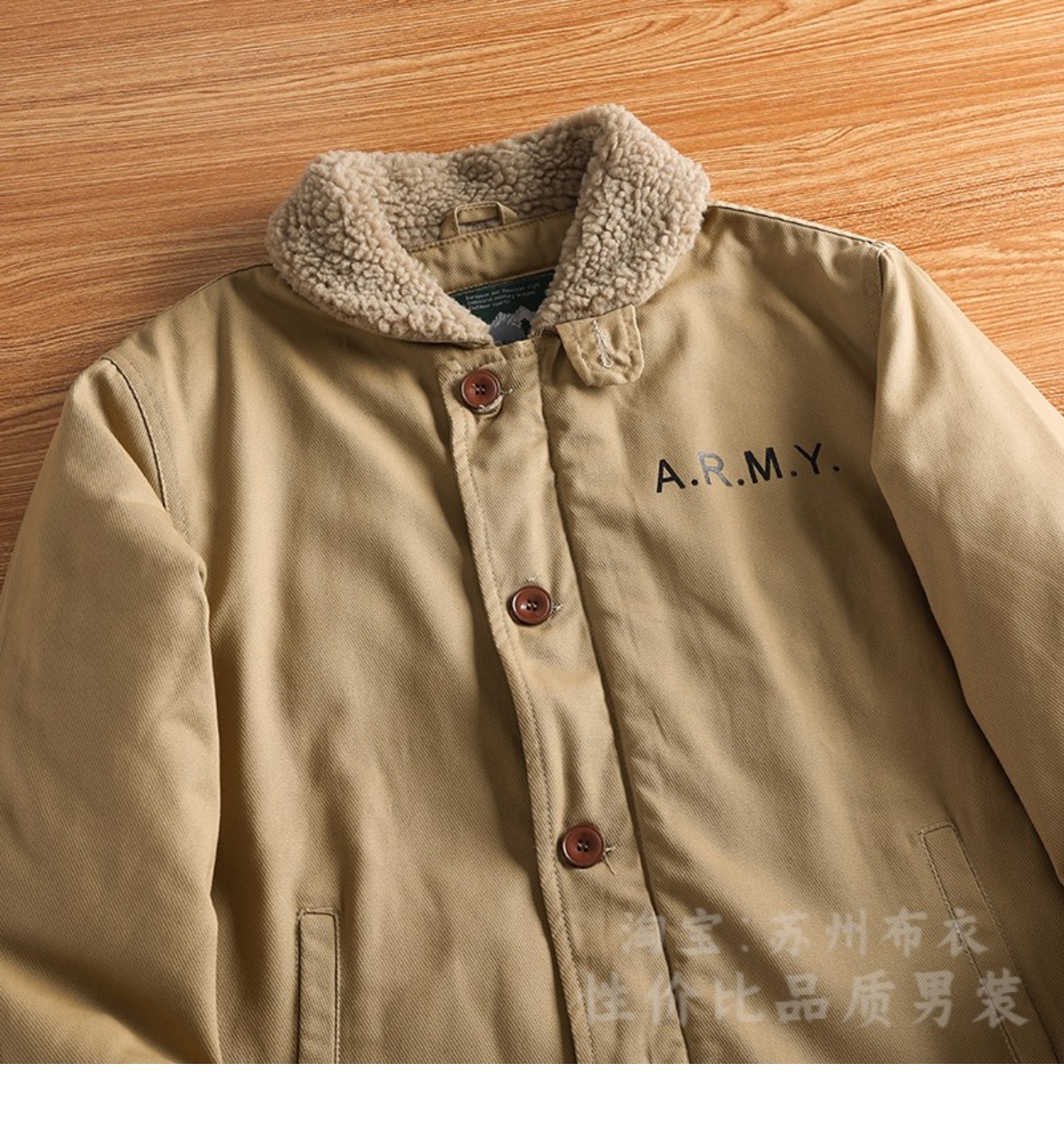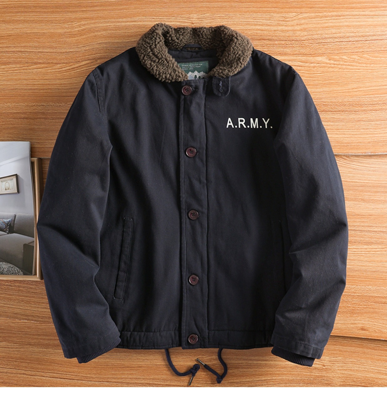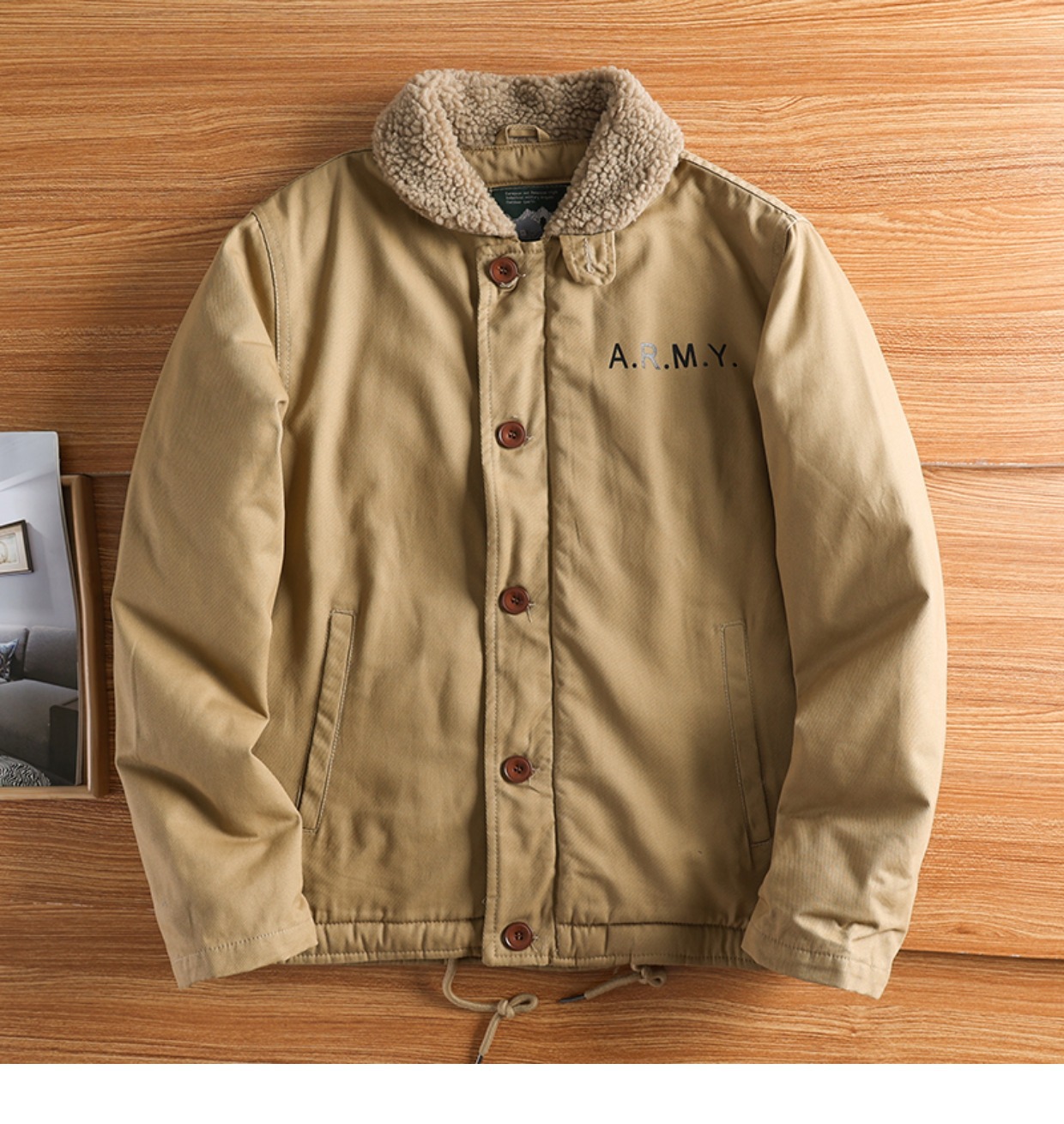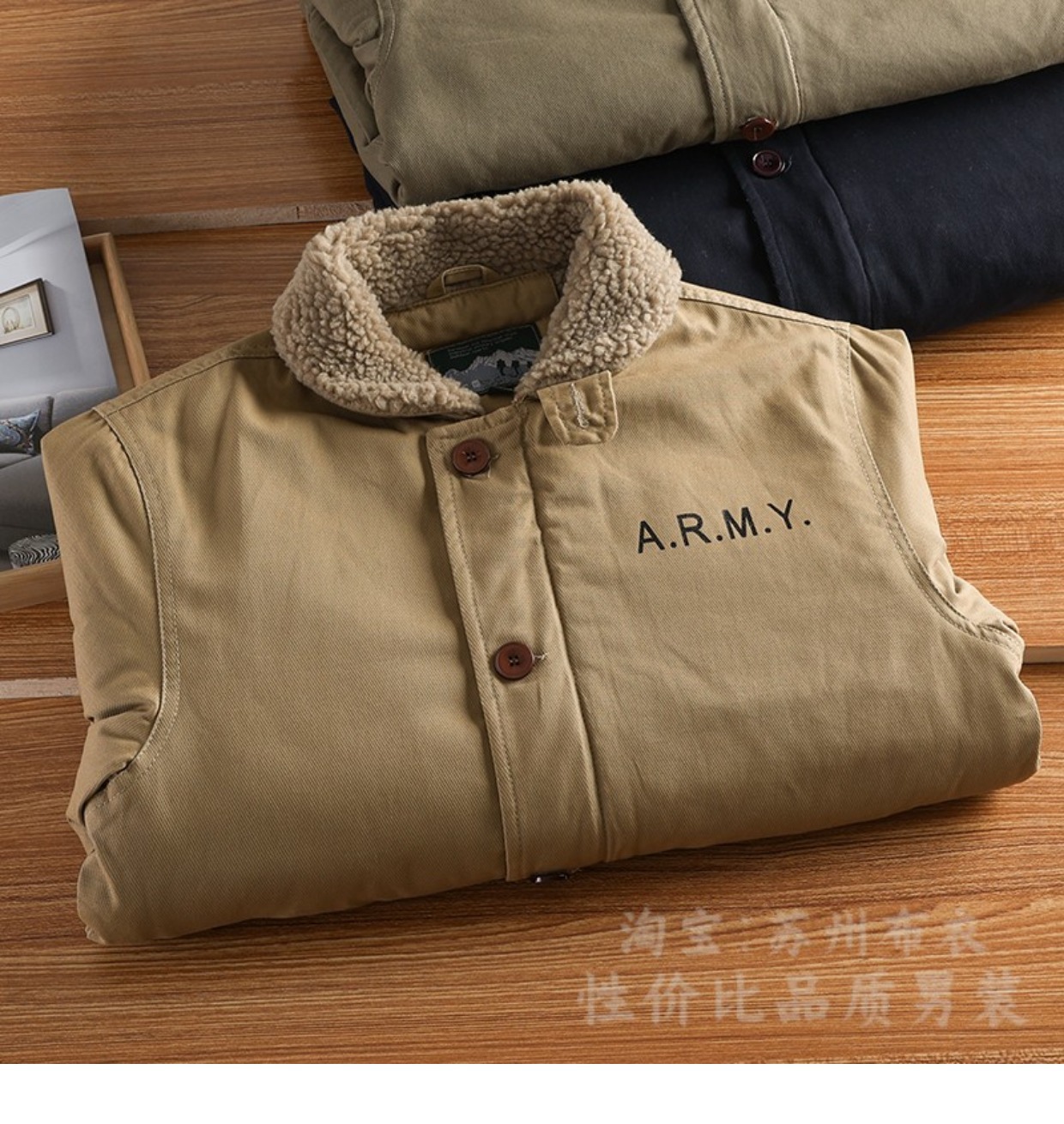 跨境冬季N1甲板服棉袄棉衣中年加厚加绒工装夹克复古羊羔绒外套男