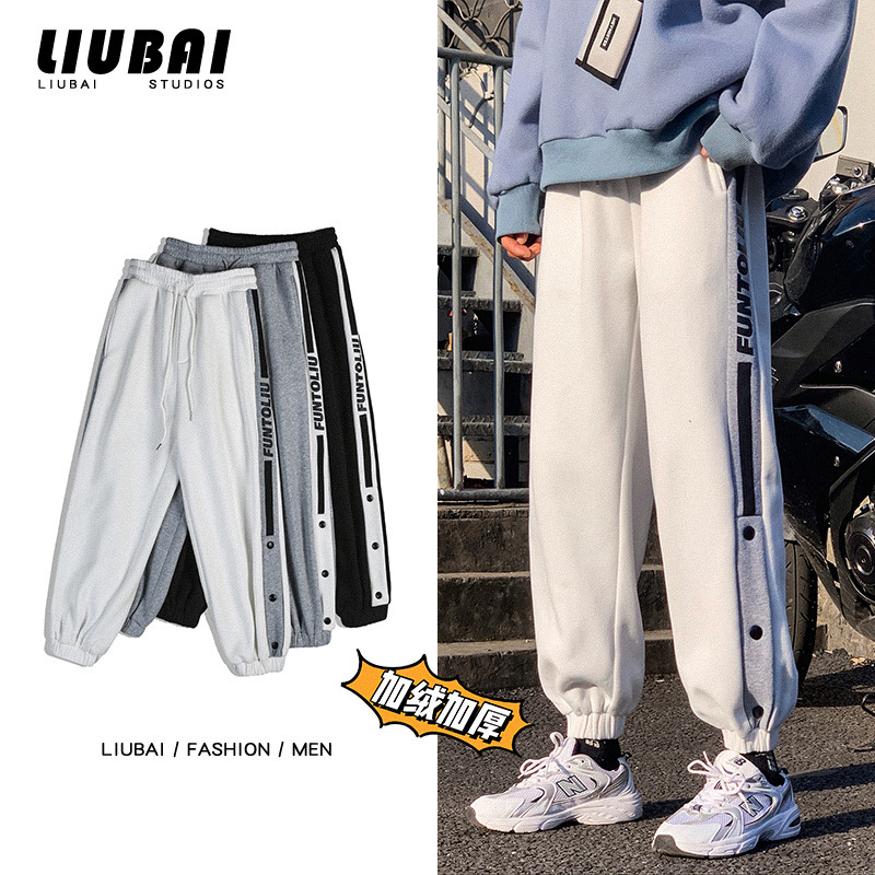 ベルベットの厚いカジュアルパンツの男性秋冬の新しいファッションは、学生のバスケットボールの足のスポーツズボンの潮を押します