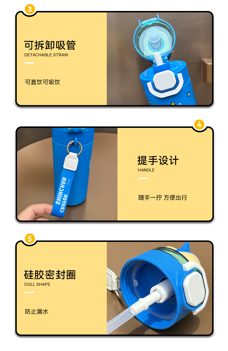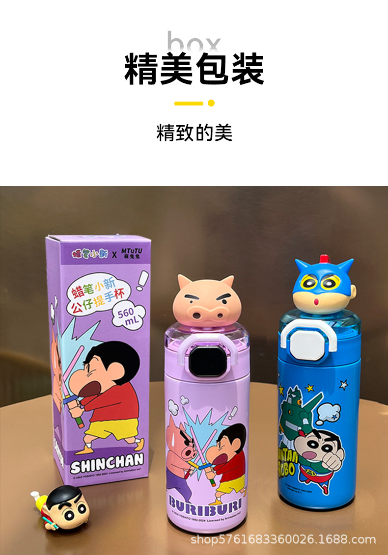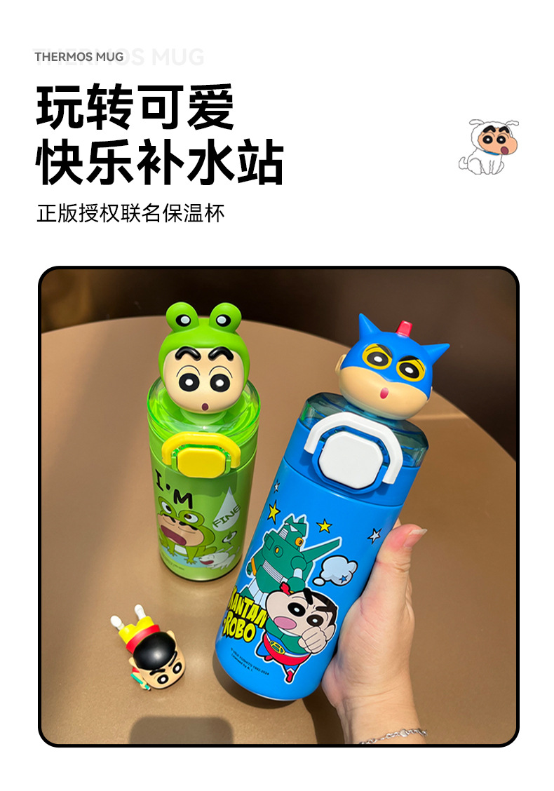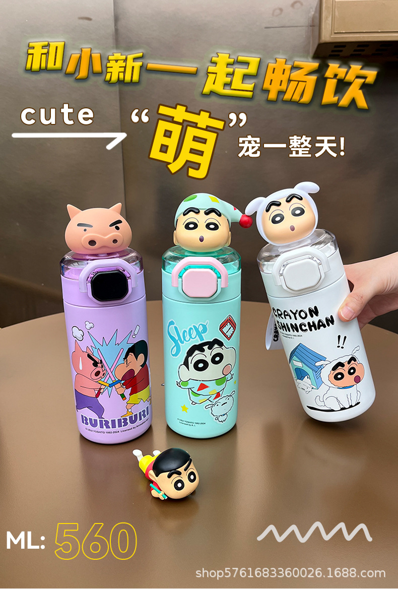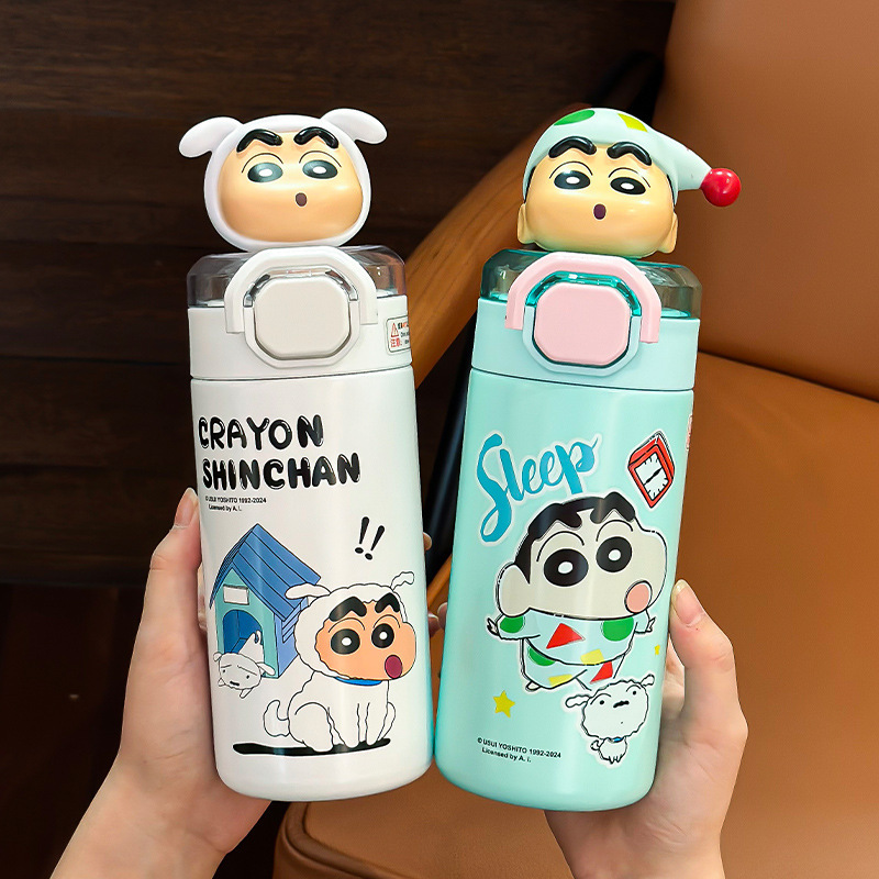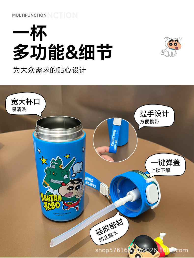 クレヨンしんちゃん正規版児童保温カップ学生高颜値バウンスストローカップ男性ネット赤アニメカップ子供