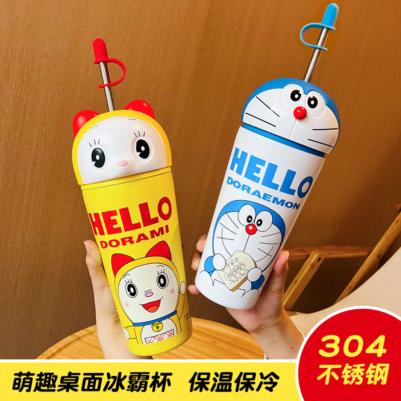 ドラえもん正規版ステンレス保温カップ高颜値大容量氷覇カップネット赤アニメストローカップ子供