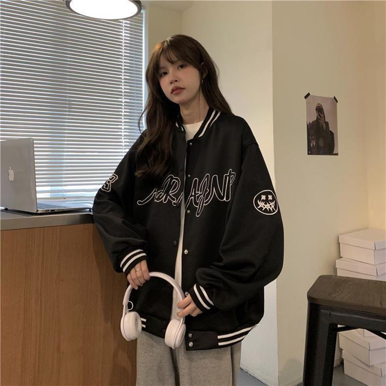 野球服のジャケットの上着の少女春秋中学校の高校の学生はゆったりしています。