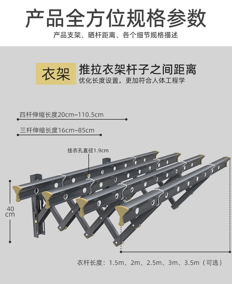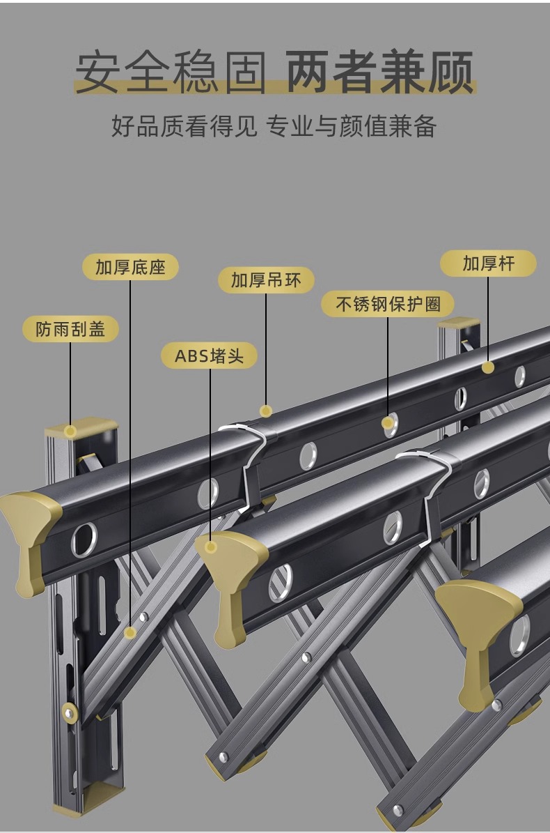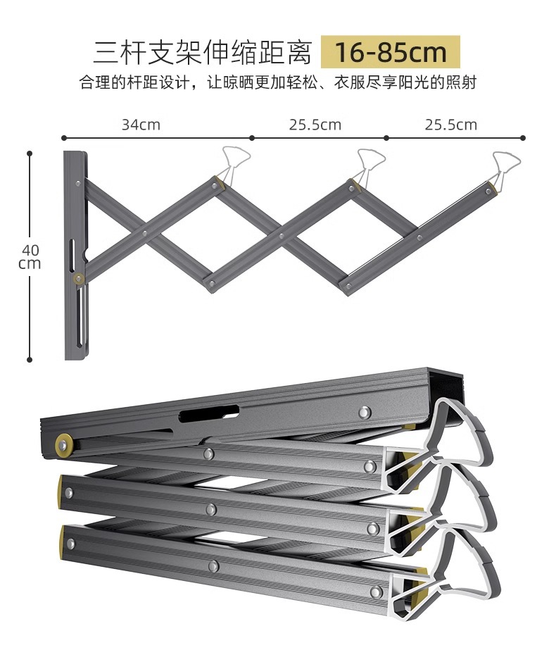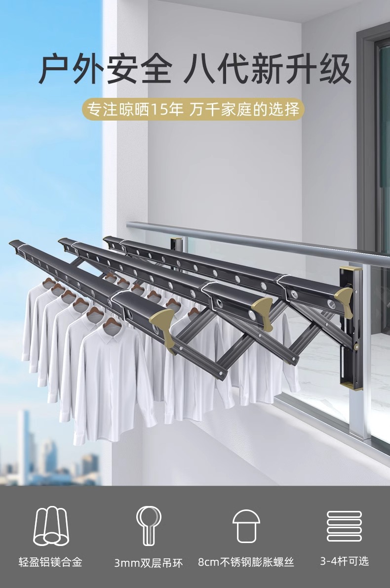 窗户阳台外伸缩晾衣架室外户外推拉折叠晾衣架加筋杆凉衣架铝合金
