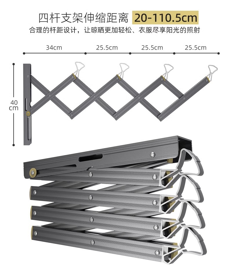 屋外プッシュプル衣類乾燥ラック、バルコニー伸縮式衣類乾燥ロッド、窓外折りたたみ式衣類乾燥ラック、家庭用屋外衣類乾燥ラック