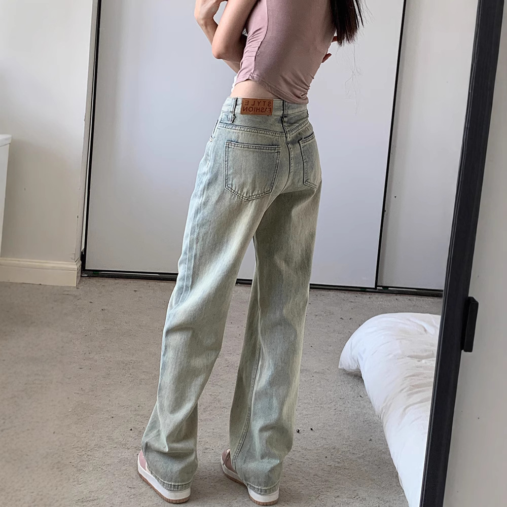 アメリカのレトロな高街の黄泥の狭い版の広脚のジーパンの女性の秋の薄い色のゆったりしているまっすぐな筒の高腰はやせている感じが現れます。