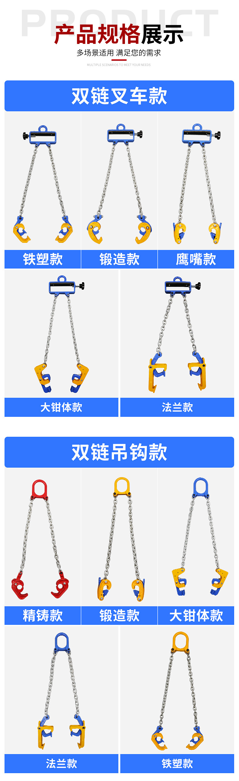 仕様 0.5トン2本爪精密鋳造フォークリフトモデル,0.5トン2本爪精密鋳造リフティングリングモデル,0.6トン2本爪大型プライヤー本体リフティングリングモデル,0.8トン2本爪幅広・肉厚鋳鋼兼用リング,0.8トン2本爪ワイド鋳鋼フォークリフトモデル,0.8トン2本爪肘頭リフティングリングモデル,1トン2爪鉄プラスチックユニバーサルフォークリフト滑り止めフック,1トン2爪フランジフォークリフトモデル,1トン2本爪強化・拡大鋳鋼フォークリフトモデル,1トン2本爪強化拡大鋳鋼兼用リング,1トン2本爪強化鋳鋼リフティングリングモデル,1トン2爪モールド鍛造フォークリフトモデル,1トン2本爪モールド鍛造リフティングリングモデル,2トン4爪フランジフォークリフトモデル,2トン4本爪大型クランプ本体フォークリフトモデル,2トン4爪鉄・プラスチックフォークリフトモデル,2トン4爪肘頭フォークリフトモデル,精密鋳造単爪,成形鍛造片爪,イーグルフック単爪