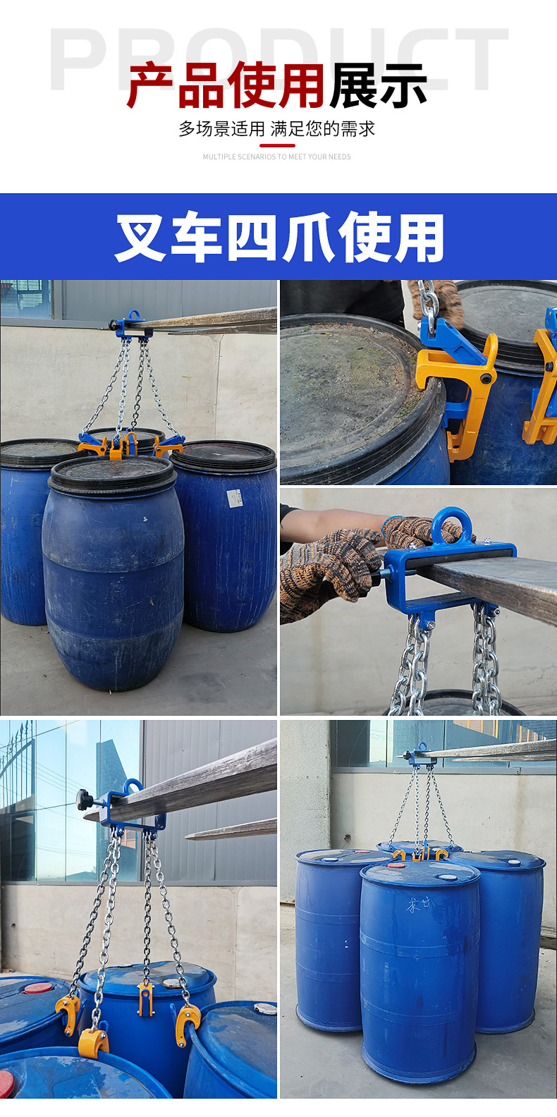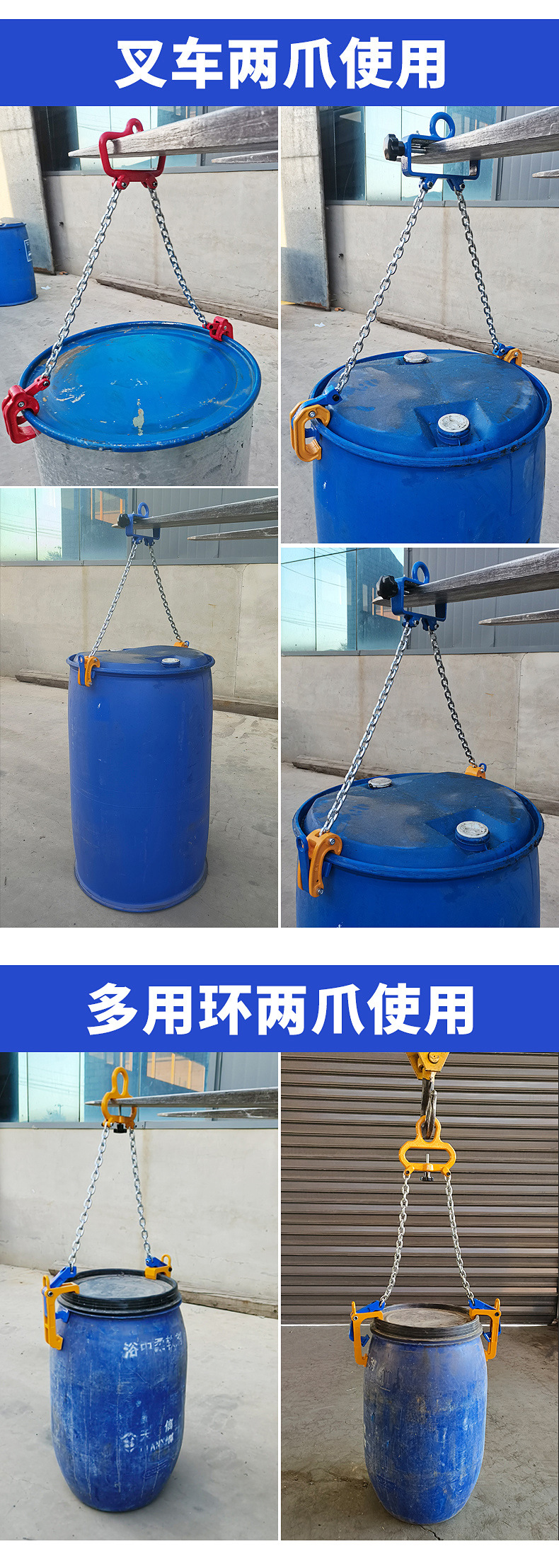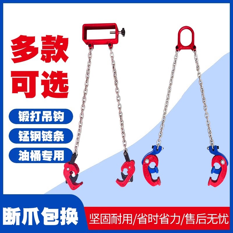 ドラム缶吊りペンチ二本鎖四本クリップフォークリフト専用クレーン吊り具鉄桶治具フック鉄塑性両用フック