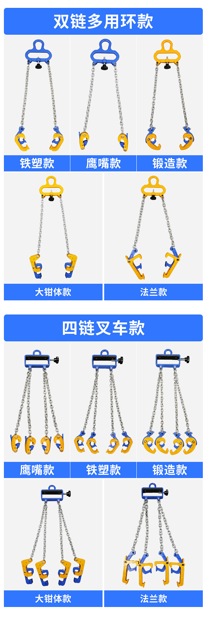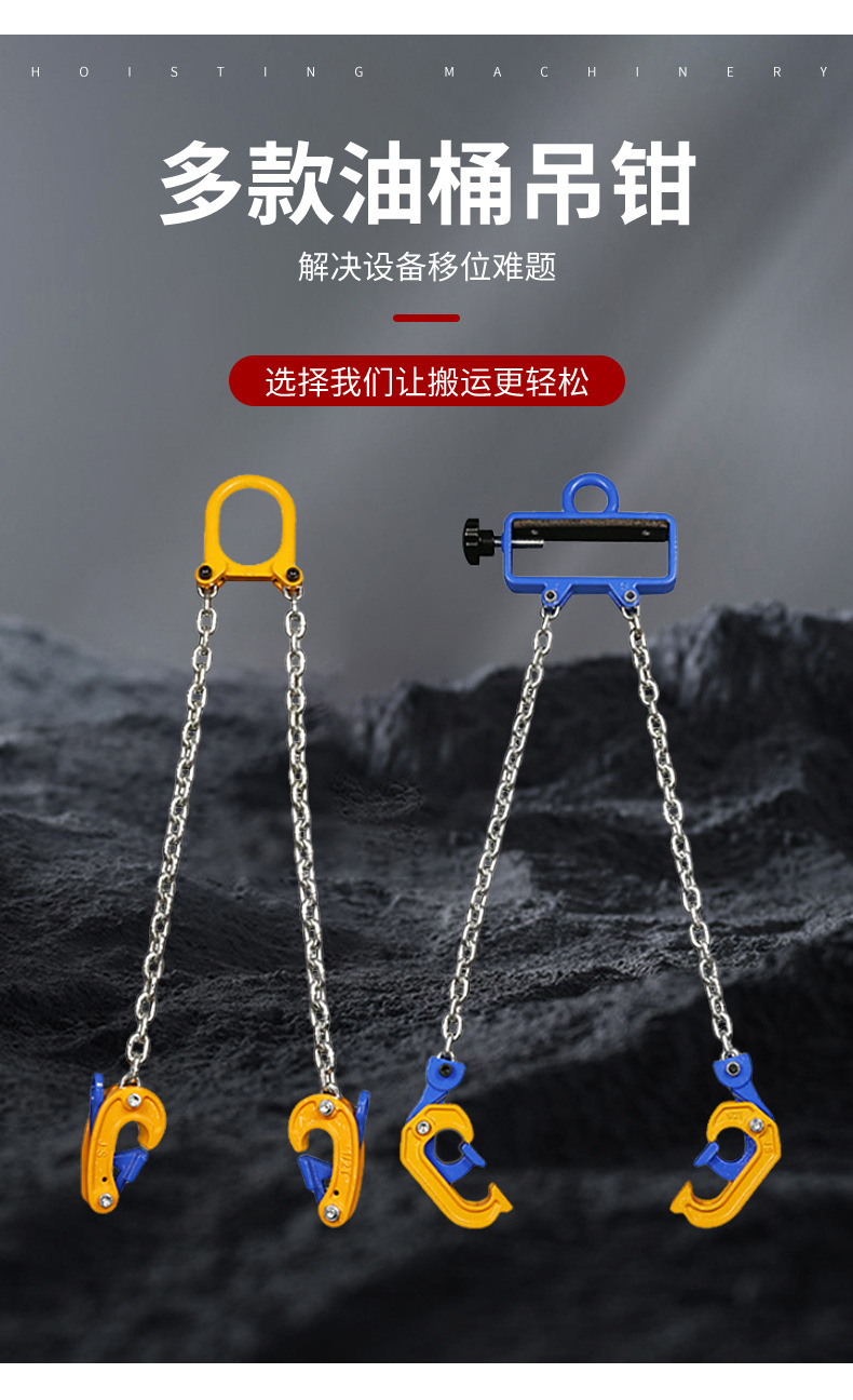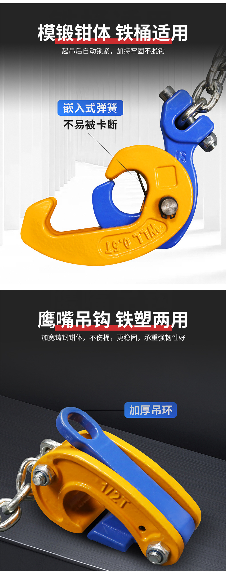 ドラム缶吊りペンチ二本鎖四本クリップフォークリフト専用クレーン吊り具鉄桶治具フック鉄塑性両用フック