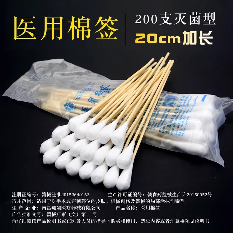 医療用大頭綿棒20cm超長滅菌竹木綿棒婦人科無菌使い捨て脱脂延長綿棒