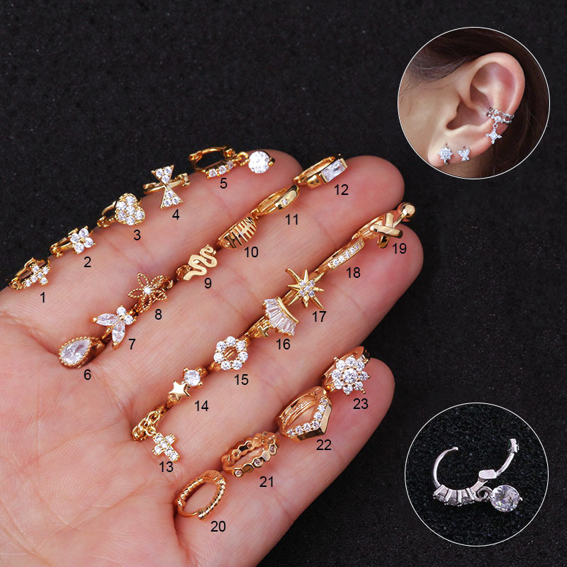 小红书细杆热卖耳骨穿刺微镶锆石小耳扣耳环穿刺饰品现货批发