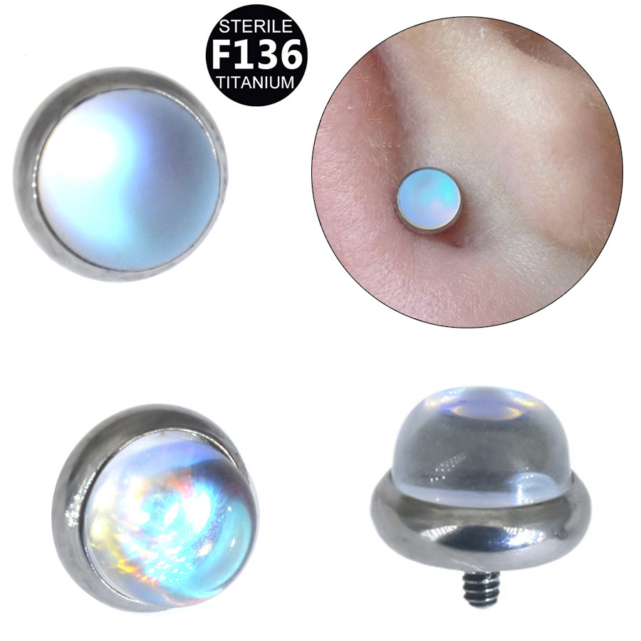 G23チタン合金月光石砂面オパール唇釘舌釘鼻釘内ねじ穿刺アクセサリー耳骨釘
