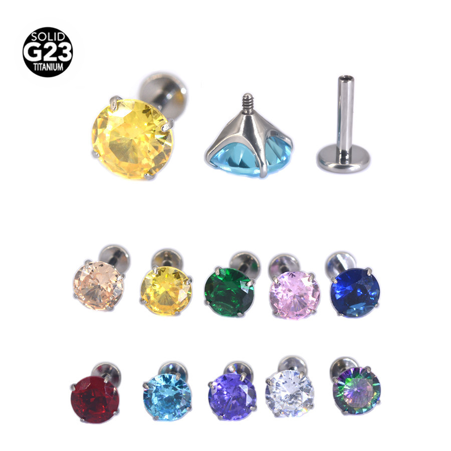 6mm大ジルコンg 23チタン合金唇釘引き爪ジルコン部品0.9歯口唇釘ピアス鼻リング眉釘
