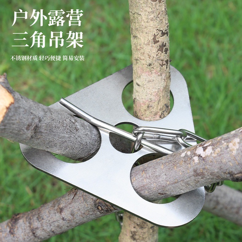 屋外焚き火台 ステンレス製 野営用三角スタンド 調整可能な吊り鍋スタンド 野営用品 火起こしスタンド 折りたたみ式