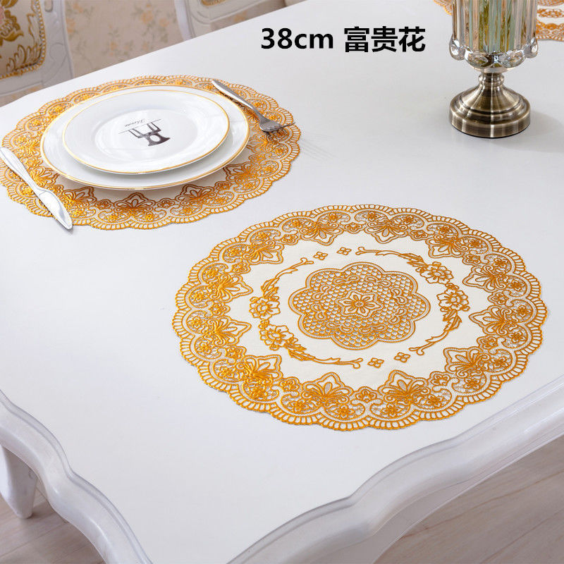 東南アジアの爆発物38cm円形ヨーロッパ式PVC箔押しカップマット断熱皿マットホテルレストランレストラン装飾マット