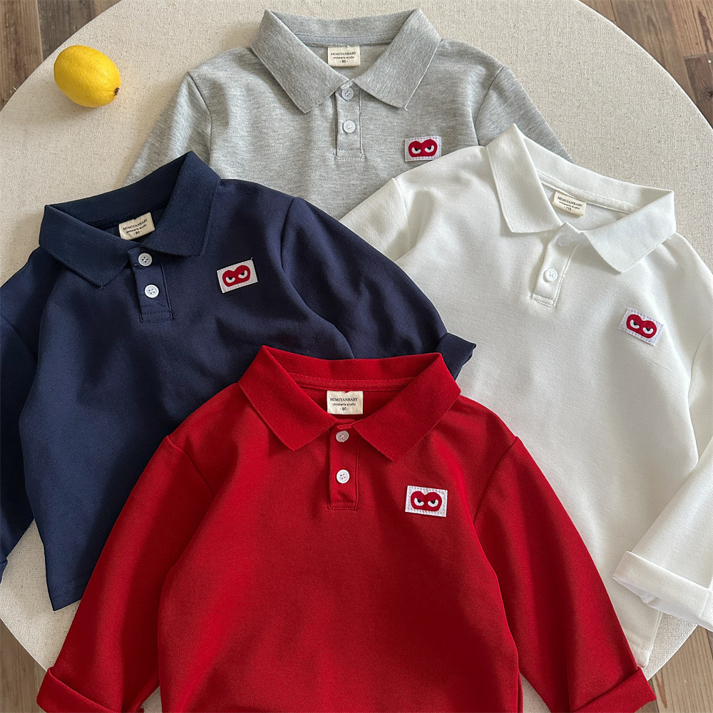 子供用長袖ポロシャツ春秋男の子用日本風ハートTシャツベビー幼児無地インナーシャツ幼児用トップス
