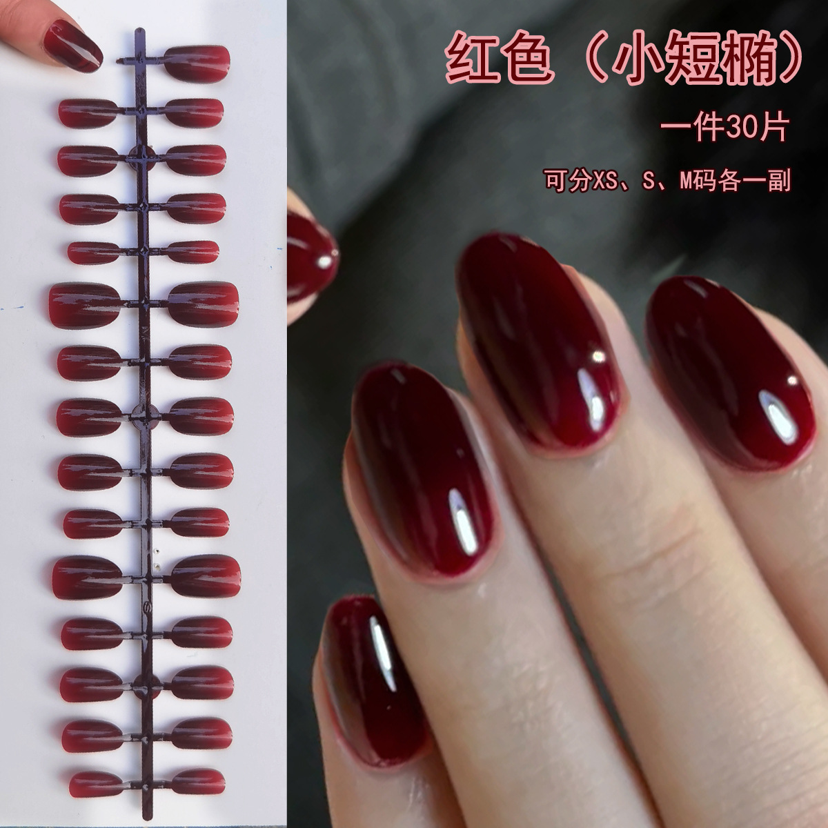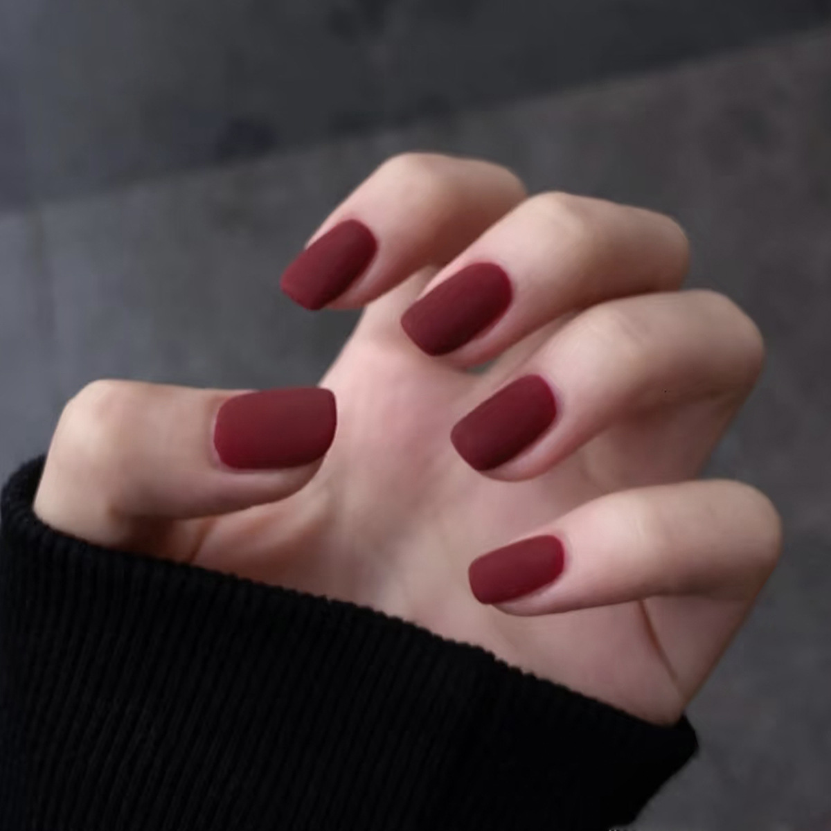 レッドベルベットつや消しワインレッドフェイクネイルウェアラブルマニキュア完成ネイルネイルアートステッカーチェリーホワイトニングハイエンド